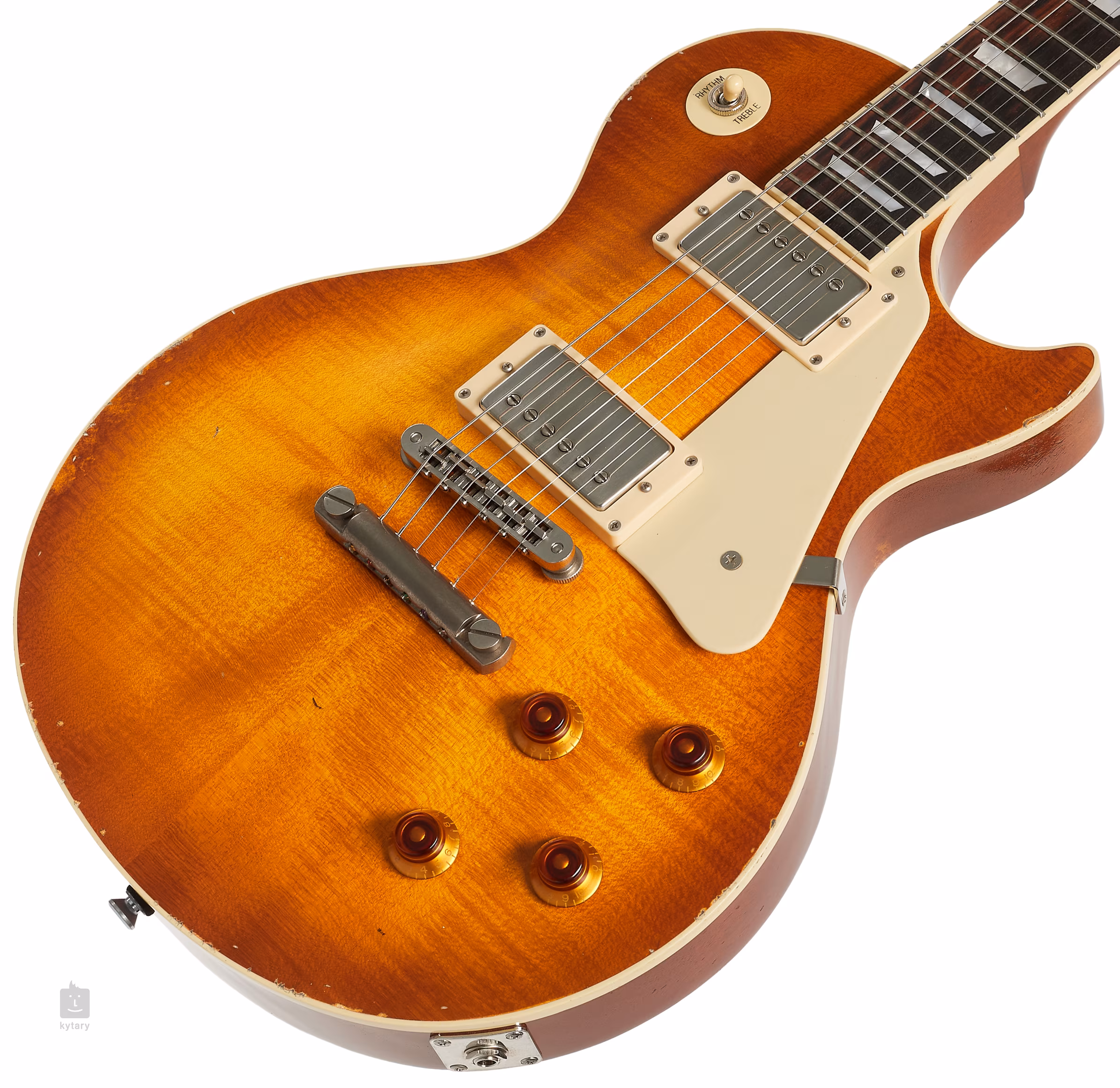 Zwei Spirit of 59 Humbucker der deutschen Marke Amber fangen den Klang und das Spielgefühl von Vintage-PAF-Tonabnehmern originalgetreu ein. Der Klangcharakter kann mit den Reglern für Lautstärke und Ton eingestellt werden. Die Saiten sind in Gotoh SD90 Mechaniken über ein Knochengriffbrett und in einem Stringer über einen massiven Kolben montiert. Das Styling wird durch das Schlagbrett im LP-Stil, das cremefarbene Korpus- und Griffbrettbinding und das Firmenlogo auf der Kopfplatte akzentuiert.