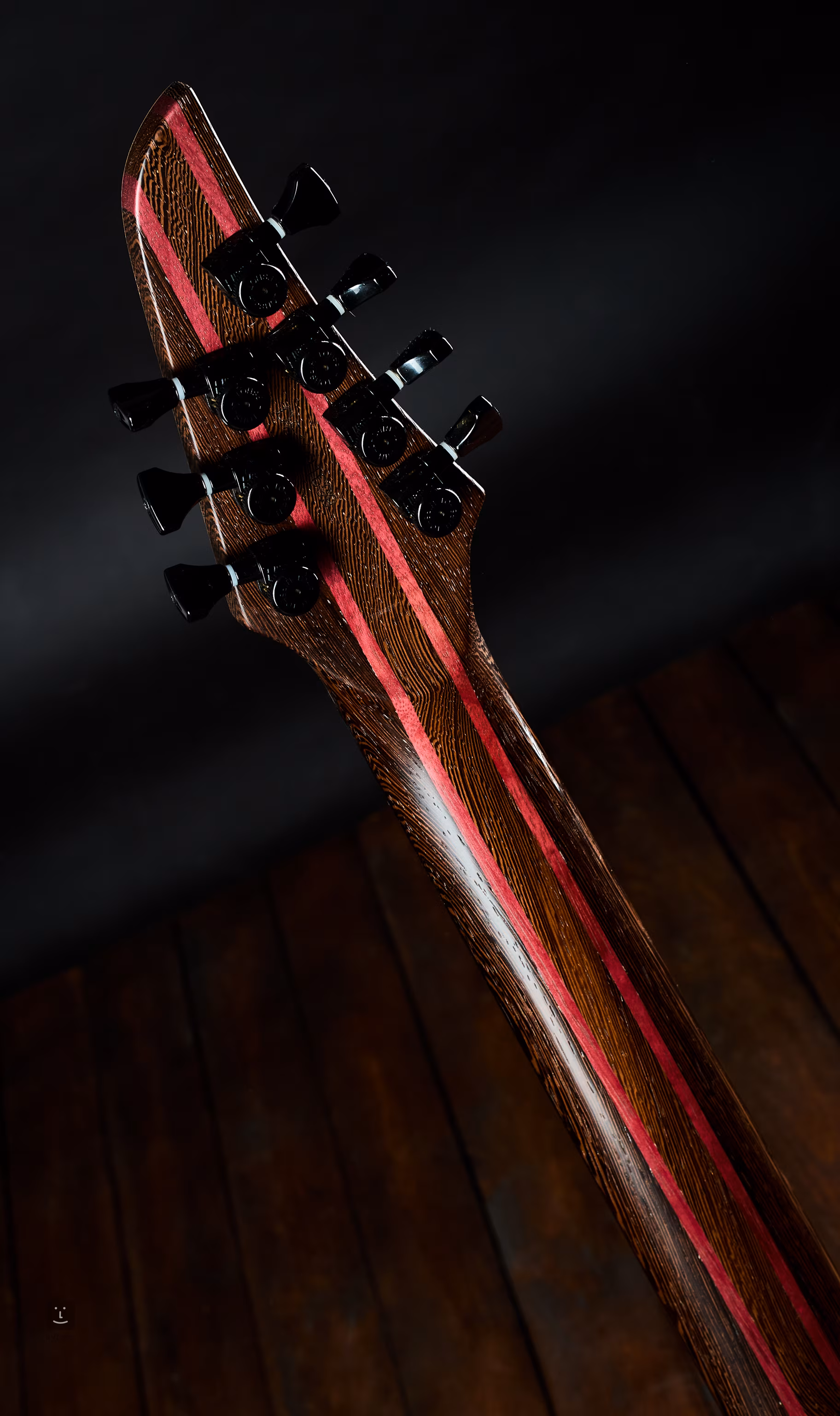 Mahagoni-Korpus; 5 Lagen Wenge/Purpleheart-Hals mit 2 Graphit-Innenverstrebungen; Ebenholz-Griffbrett, 16" Radius.
