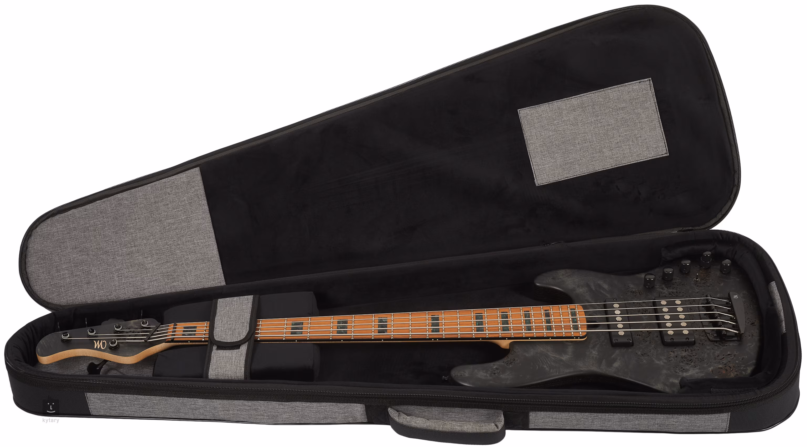 Der Bass zeichnet sich außerdem durch tadellose Verarbeitung und erstklassige Materialien aus, sei es die sorgfältige Auswahl der Hölzer - Sumpfesche-Korpus, Pappeldecke, Ahornhals und Pau-Ferro-Griffbrett -, verchromte Hardware, hochwertige Hipshot HB6C Ultralite-Mechaniken oder Details wie Schaller-Gurtschlösser. Zu allem Überfluss wird der Bass auch noch in einem hochwertig gepolsterten Koffer direkt aus der Mayones-Werkstatt geliefert.