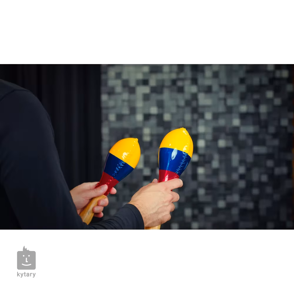 Dieses Modell wird in Handarbeit aus Rohleder gefertigt und hat einen vollen und unverwechselbaren Klang mit traditioneller Färbung. Die Holzgriffe sind ergonomisch geformt und liegen auch bei längerem Spielen angenehm in der Hand. Es ist in den Farben Kolumbiens dekoriert. Wie üblich, werden sie immer paarweise verkauft.