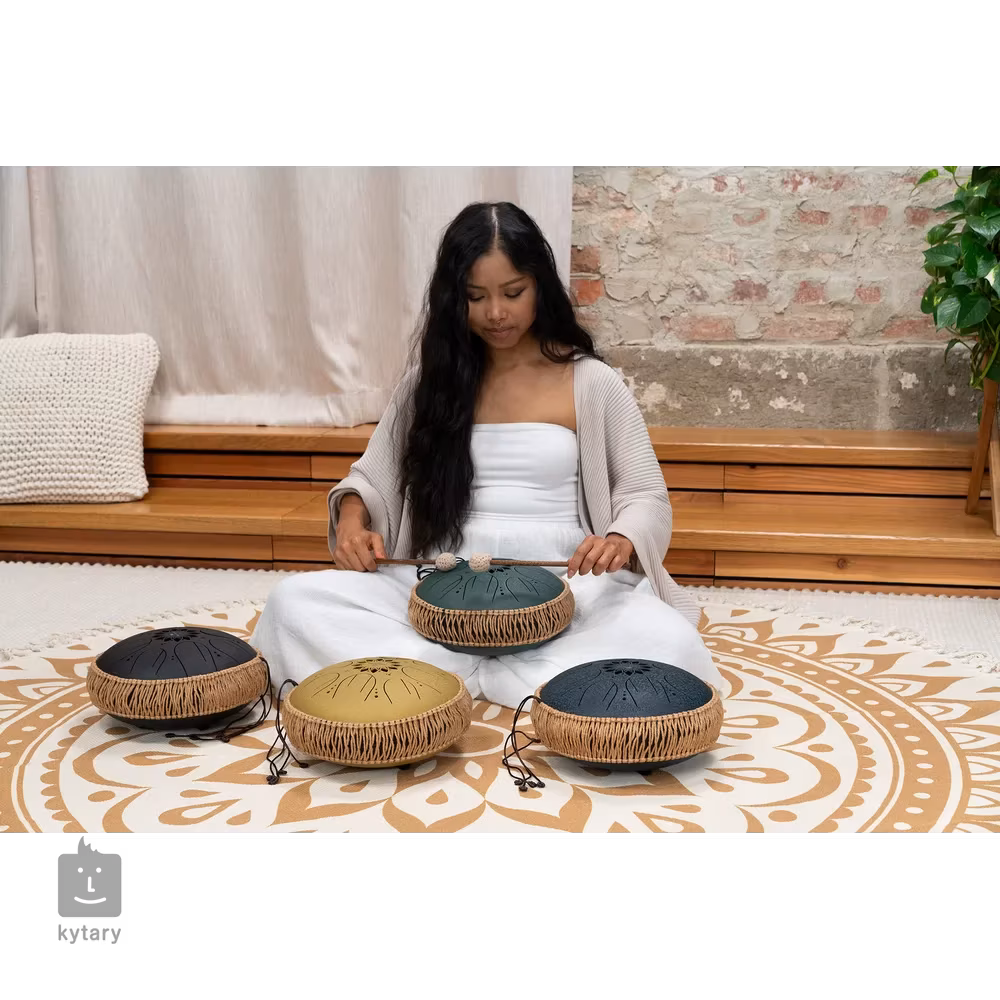 Die Meinl Sonic Energy 10" Medium Octave Steel Tongue Drum ist aus hochwertigem Edelstahl gefertigt und verfügt über acht Töne, die zwei Oktaven umfassen. Dadurch entsteht ein schöner und meditativer Klang, der dem einer Handpan ähnelt. Da sich das Schallloch am Boden der Trommel befindet, lässt sich der Klang noch kompakter gestalten, wenn der Deckel mit einem Silikonstopfen verschlossen wird. Drei Silikonfüße auf dem Boden der Trommel sorgen dafür, dass die Trommel nicht verrutscht. Die Trommel wird mit zwei Holzschlägeln mit weichen Gummifellen und einer praktischen Tasche mit Reißverschluss und Griff zum einfachen Transportieren geliefert. Dieses Instrument ist ideal für alle, die durch das Spielen eines Musikinstruments Entspannung und Meditation suchen.