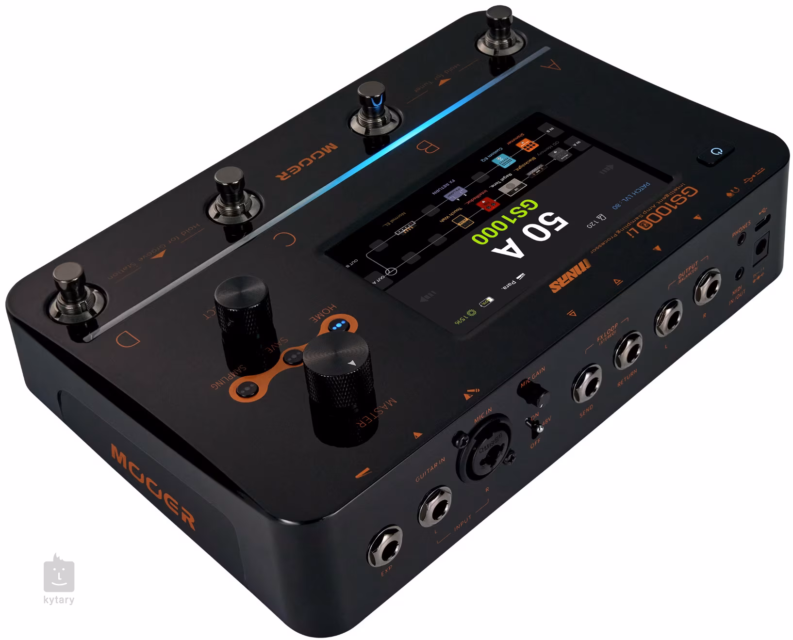 Die intuitive Steuerung erfolgt über einen Fünf-Zoll-Touchscreen und insgesamt vier Fußtasten. Ein externer drahtloser MOOER F4-Fußschalter oder die Steuerung über externe MIDI-Controller wird ebenfalls unterstützt. Darüber hinaus bietet das Gerät umfangreiche Signal-Routing-Optionen - neben den üblichen Stereo-Ein- und Ausgängen gibt es einen Mikrofon-XLR-Eingang, eine Effektschleife (Send, Return), MIDI I/O, einen USB-Anschluss und einen Kopfhörerausgang. Die Box kann auch als USB-Soundkarte mit 2 Eingängen und 2 Ausgängen fungieren, so dass Sie in hoher Audioqualität mit Abtastraten von bis zu 192 kHz aufnehmen oder streamen können. Über den USB-Anschluss können Sie das Gerät auch an die Bearbeitungssoftware Ihres Unternehmens anschließen, um Audiobearbeitungen durchzuführen, Samples und IRs zu importieren/exportieren, die Firmware zu aktualisieren und vieles mehr. Ein Netzkabel, ein USB-Kabel und ein MIDI-Adapter sind im Lieferumfang enthalten.