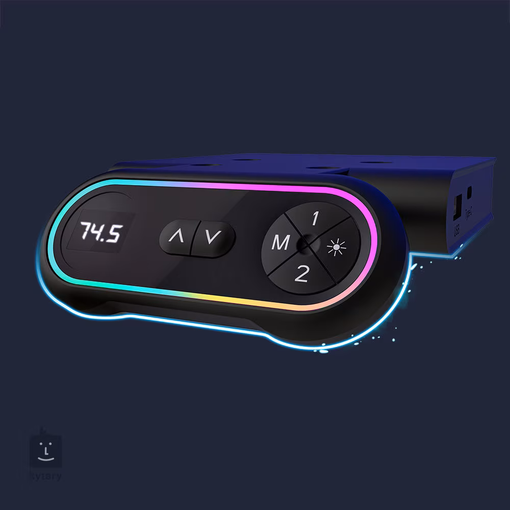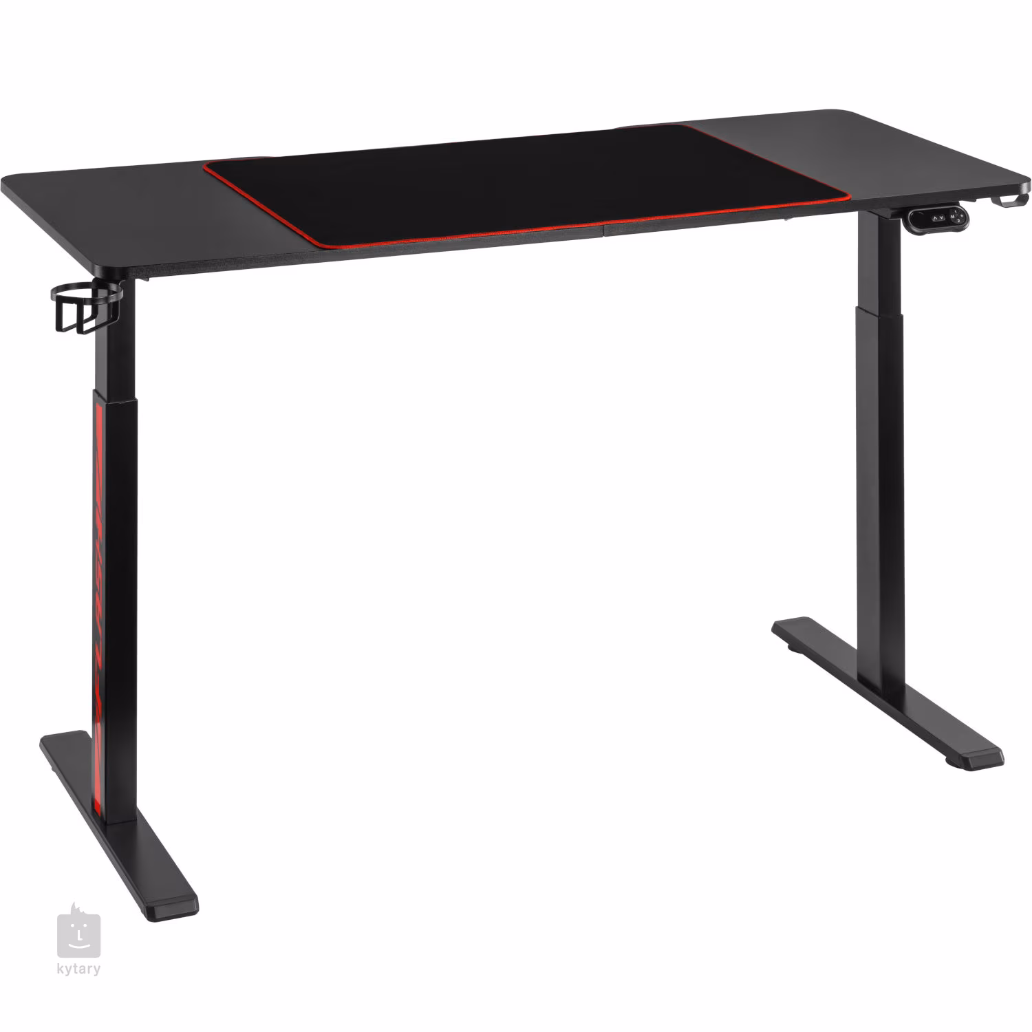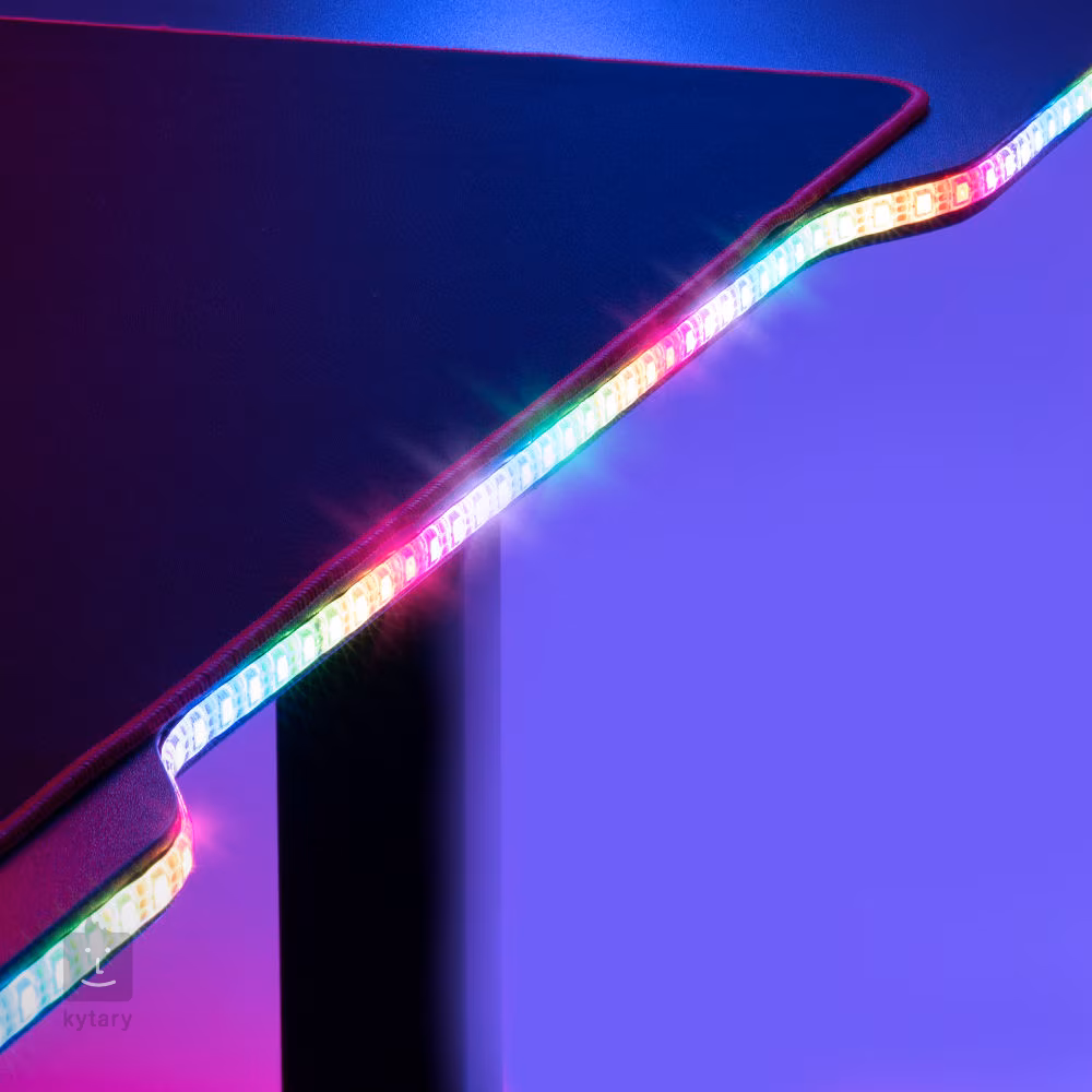 Gaming-Tisch aus Stahl, Aluminium und Kunststoff mit RGB-LED-Beleuchtung, verstellbarer Höhe, USB-C-Ladeanschluss (18 W), Becher- und Kopfhörerhalter, 18 mm dicker Tischplatte und IP20-Schutz.