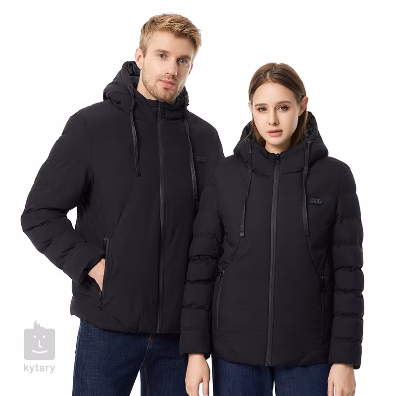 Unisex-Winterjacke mit vier wärmenden Einsätzen, geeignet für Wanderungen, sportliche Aktivitäten oder Arbeiten im Freien. Die Thermounterlage arbeitet in drei Temperaturmodi (25/35/45 Grad Celsius) und wird mit einer Powerbank mit einer Kapazität von bis zu 10.000 mAh (nicht im Lieferumfang enthalten) betrieben, um 6 bis 12 Stunden Wärme zu liefern. Die Jacke ist aus wasserabweisendem Polyester gefertigt.