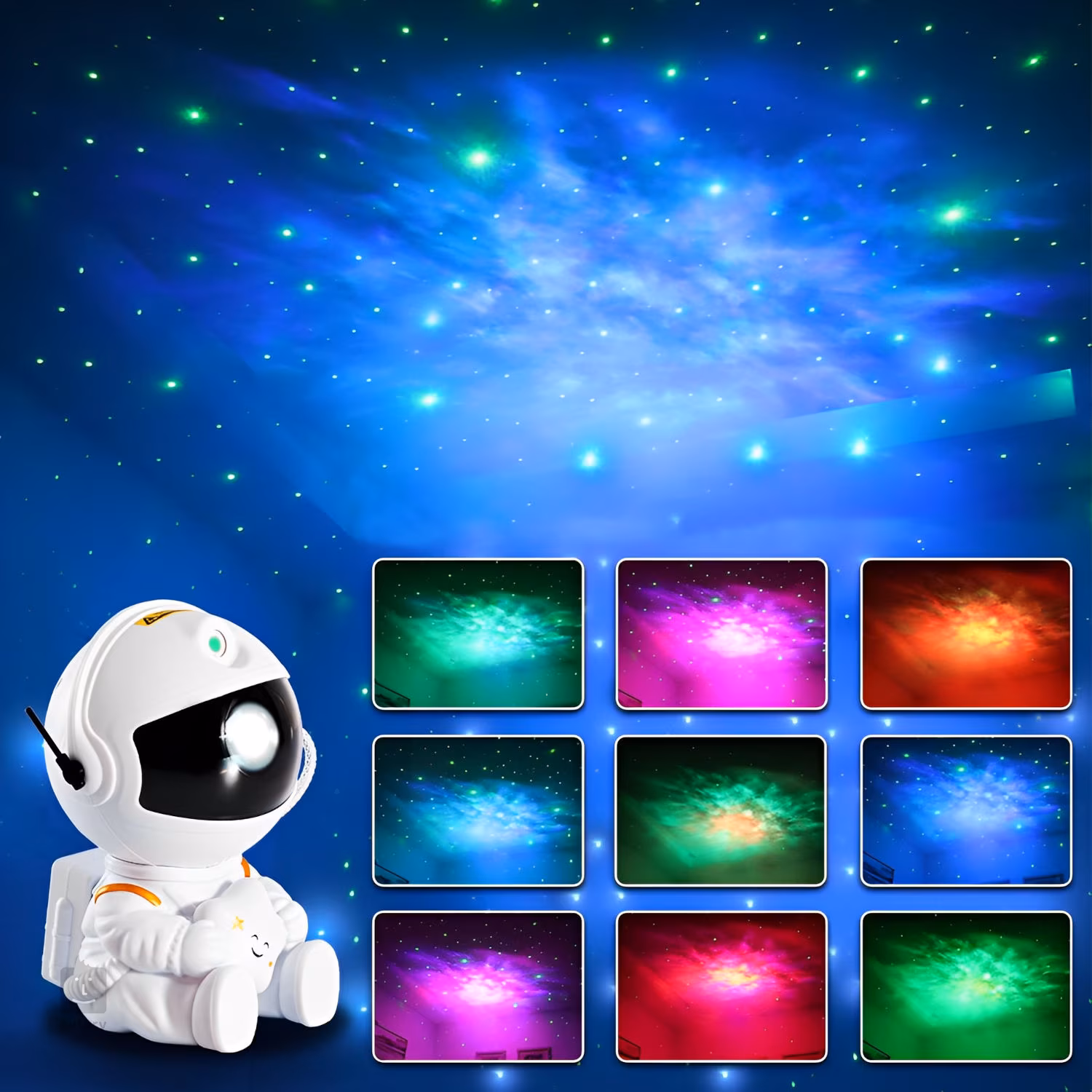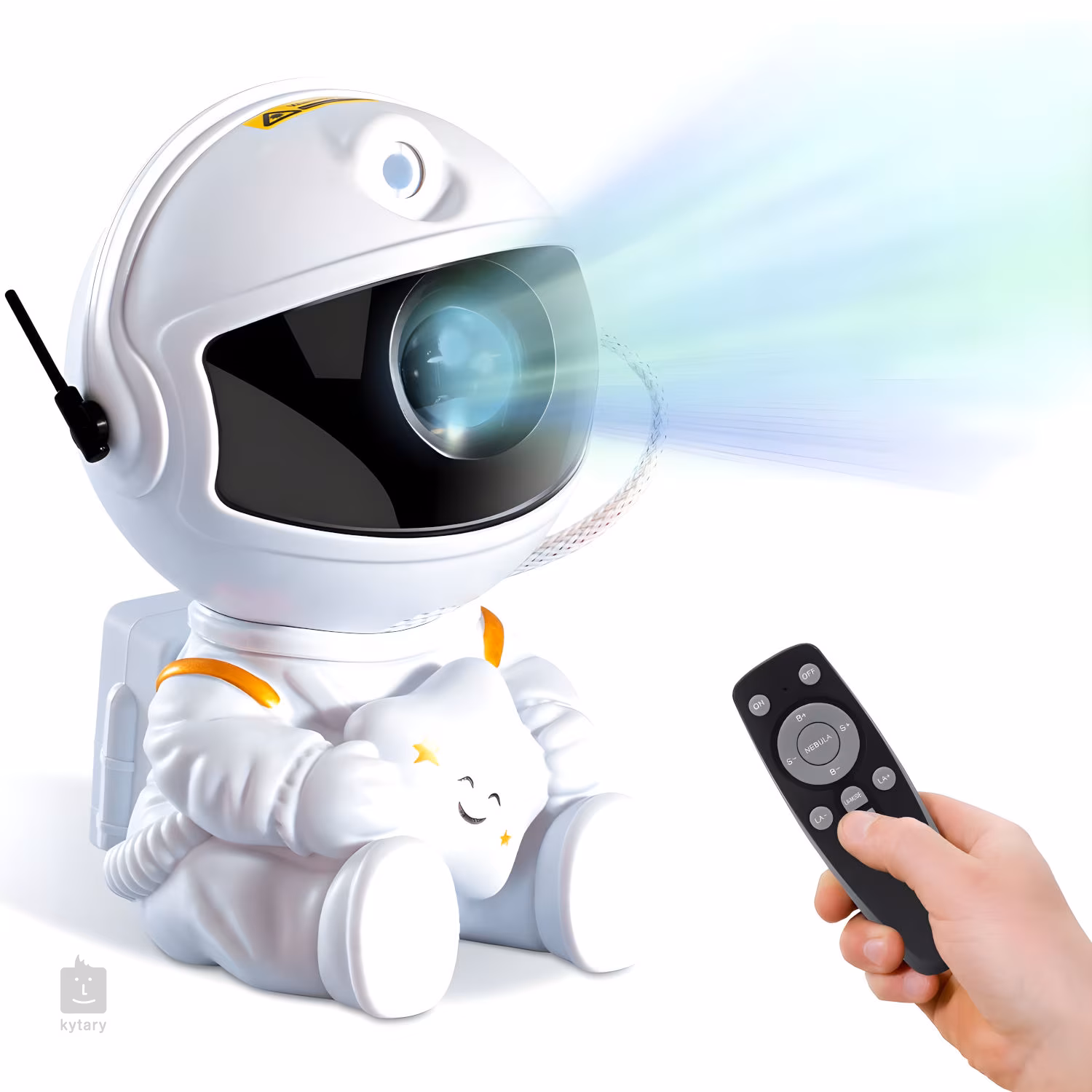 Der Mozos HR-F2 Laserprojektor ist ein besonderer Nachthimmelprojektor in Form eines niedlichen Astronauten, der alle Astronomiebegeisterten, Kinder jeden Alters und Liebhaber von Umgebungsbeleuchtung gleichermaßen begeistern wird. Er ist ein kompaktes Beleuchtungsgerät, das einen Sternenhimmel und eine originalgetreue Nachbildung eines Sternennebels an Ihre Decke projiziert. So fühlt man sich wie in einem Planetarium oder im Weltraum. Der Astronautenkopf ist magnetisch und drehbar, so dass Sie die Richtung der Beleuchtung ganz einfach an Ihre Bedürfnisse anpassen können. Die Steuerung erfolgt über den drahtlosen Controller oder die Tasten auf der Rückseite der Figur.