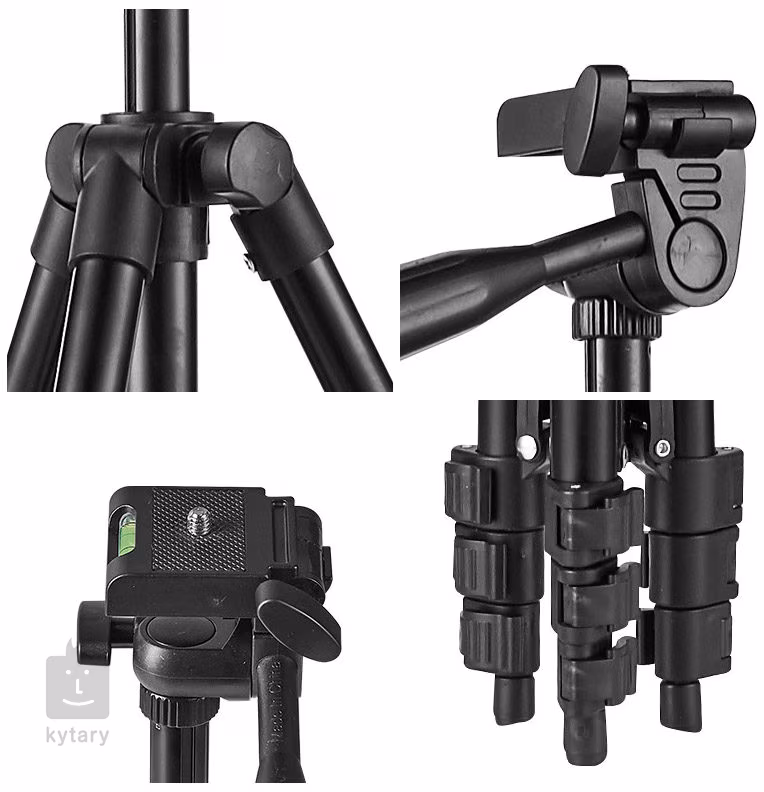Ein professionelles Stativ für Smartphones und Kameras mit einstellbarer Höhe, hervorragenden Anti-Vibrations-Eigenschaften, einem stabilen Hebel für eine einfache Neigungseinstellung und einem faltbaren Design in kompakter Größe für einen einfachen Transport. Im Paket enthalten sind eine Smartphone- und Kamerahalterung sowie eine Tragetasche.