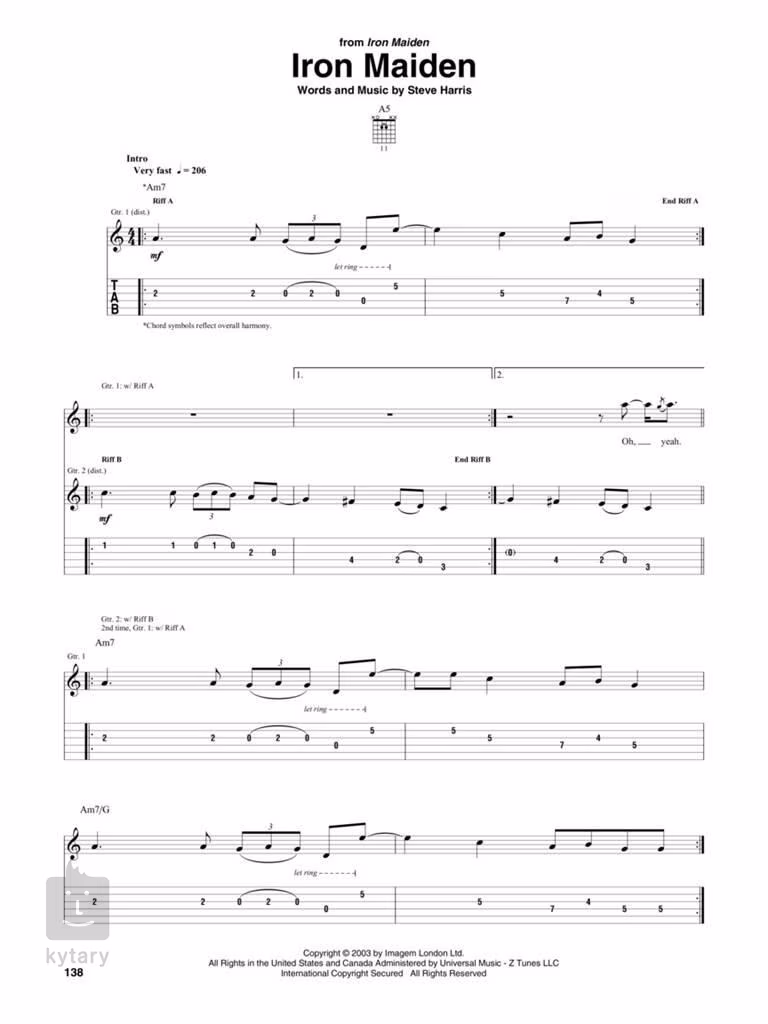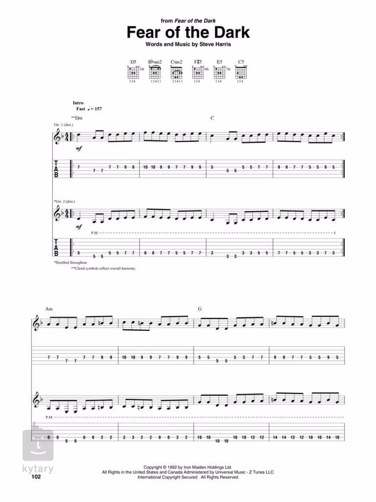 Iron Maiden - Guitar TAB enthält Noten und Gitarrentabulatur von fünfundzwanzig berühmten Songs und Hits der britischen Metal-Größen Iron Maiden.