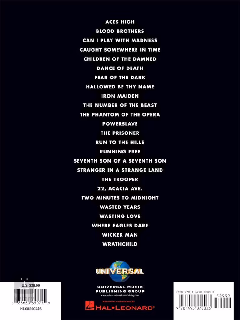 Die Titelliste: Aces High Blood Brothers Can I Play With Madness Caught Somewhere In Time Children Of The Damned Tanz des Todes Fear Of The Dark Heilig sei Dein Name Eiserne Jungfrau The Number Of The Beast Das Phantom der Oper Powerslave Der Gefangene Lauf zu den Hügeln Frei laufen Siebter Sohn eines siebten Sohnes Fremder in einem fremden Land Der Soldat 22, Acacia Ave. Zwei Minuten bis Mitternacht Vergeudete Jahre Verschwendete Liebe Where Eagles Dare Wicker Man Zorneskind