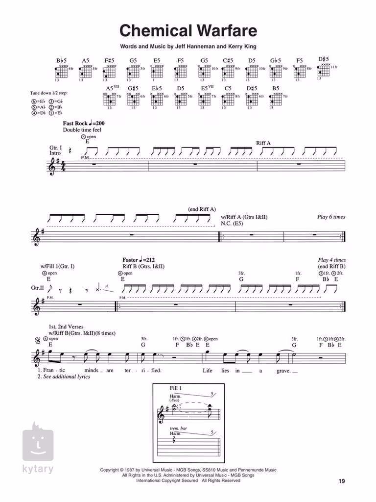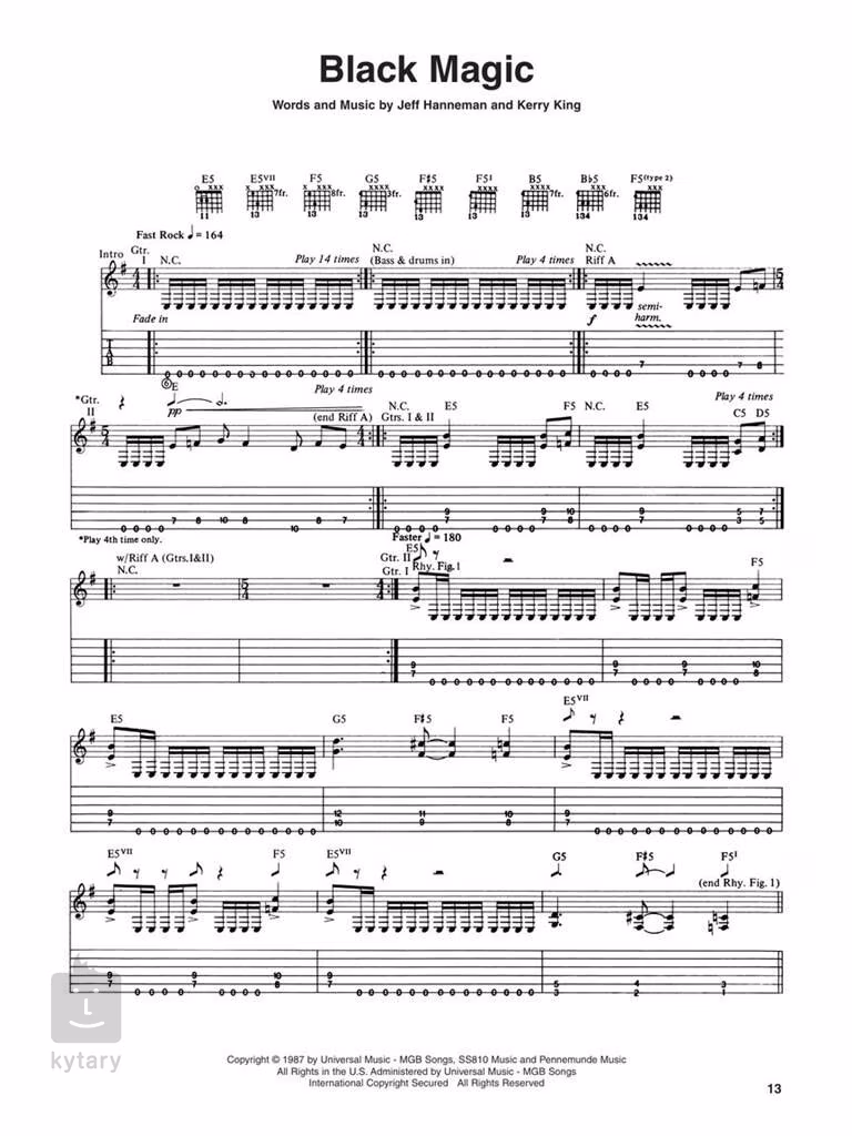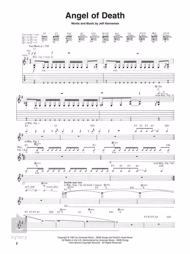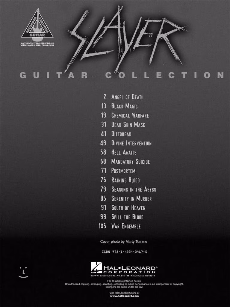 Die Slayer - Guitar Collection bietet Transkriptionen von fünfzehn unsterblichen Metal-Klassikern der amerikanischen Thrash-Metal-Legende Slayer, aufgenommen in Noten und Gitarrentabulatur.