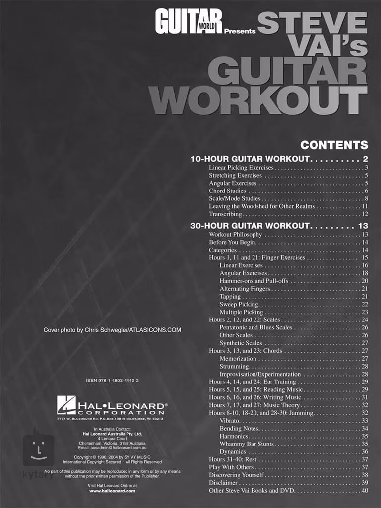 Steve Vai's Guitar Workout ist ein Leitfaden zur Verbesserung der Gitarrenfertigkeiten und der musikalischen Wahrnehmung von einem der kompetentesten Menschen in der Branche. Zwei Herausforderungen in Form eines 10- und eines 30-stündigen Workouts beinhalten Tonleitern, Akkordübungen, Gehörbildung, Lesen/Spielen vom Blatt, Musiktheorie, eine vollständige Erklärung von Gitarrentechniken und mehr. Dies ist eine umfassende Zusammenfassung der Arbeitsroutine von Steve Vai mit Erklärungen zu jeder Technik und jedem Verfahren, die in dieser Form 1990 in der Zeitschrift Guitar World veröffentlicht wurde und seitdem x Generationen von Gitarristen beeinflusst hat.