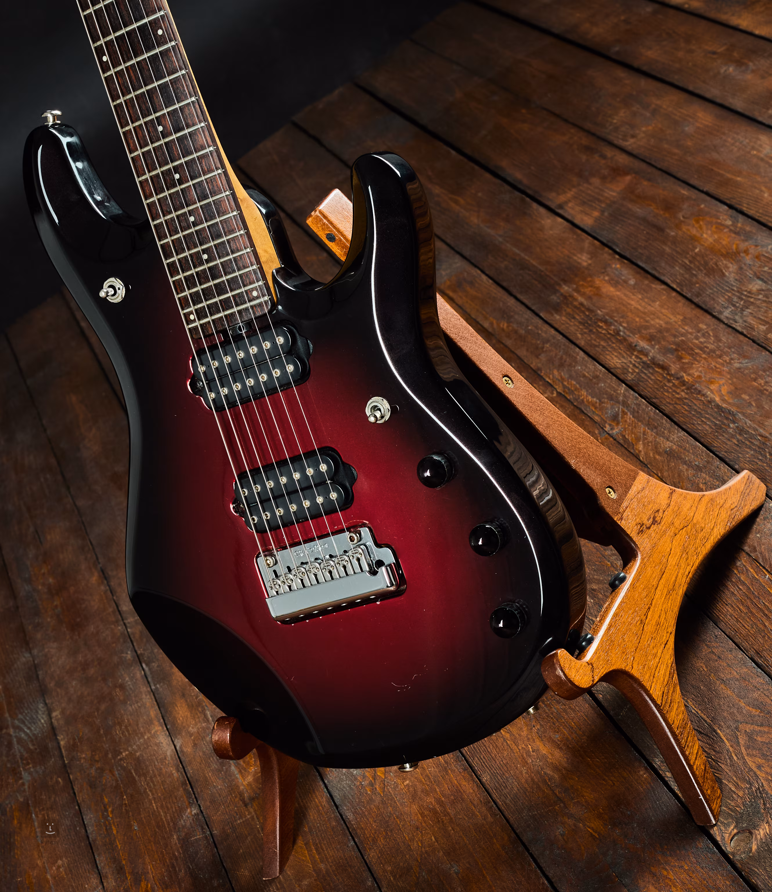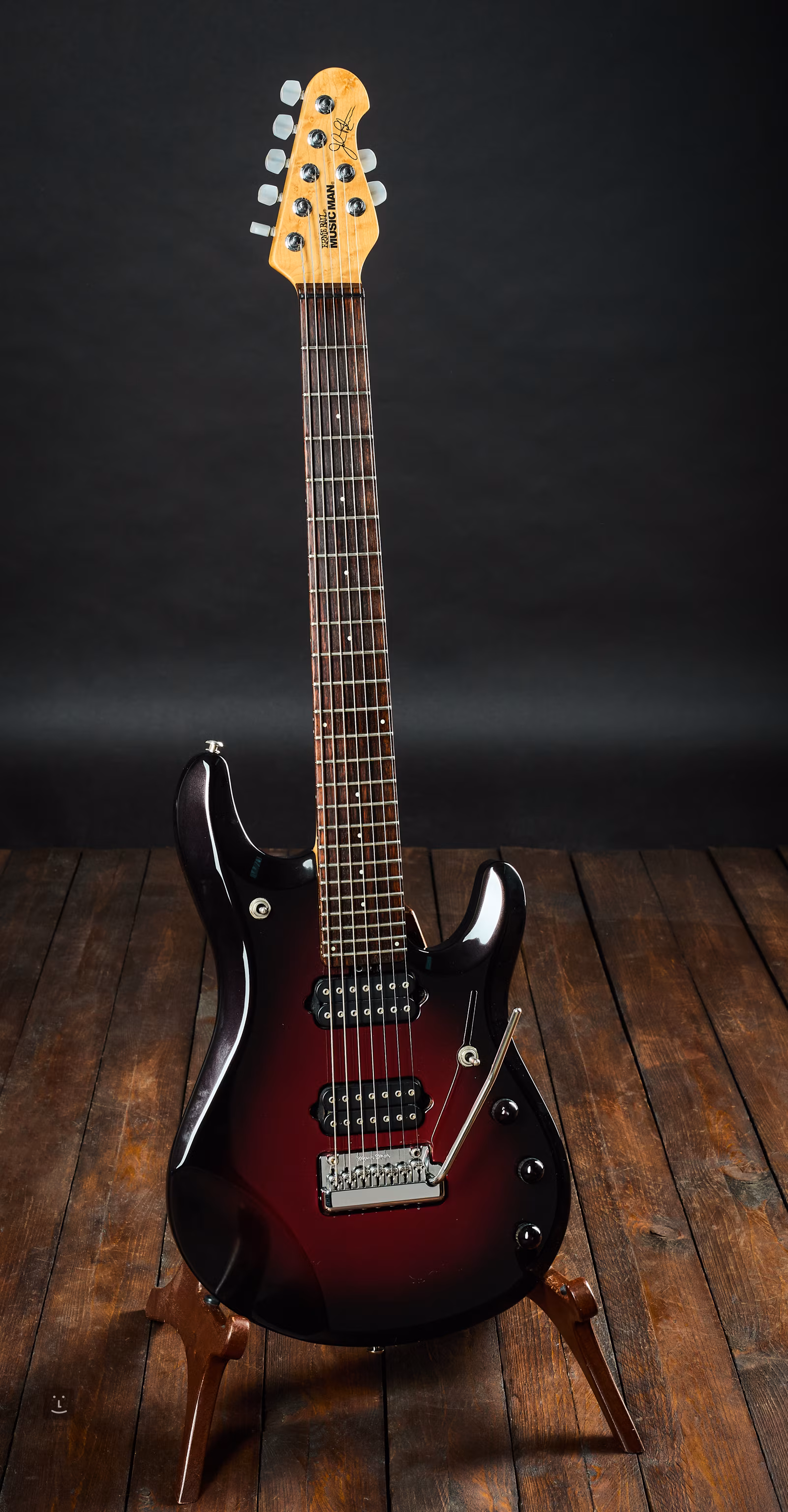 Eine siebensaitige Version des JP-Modells mit einem Piezo-Tonabnehmer im Hals, lackiert in dunkelroter Büste. Das Instrument wurde im Jahr 2003 in den USA hergestellt.