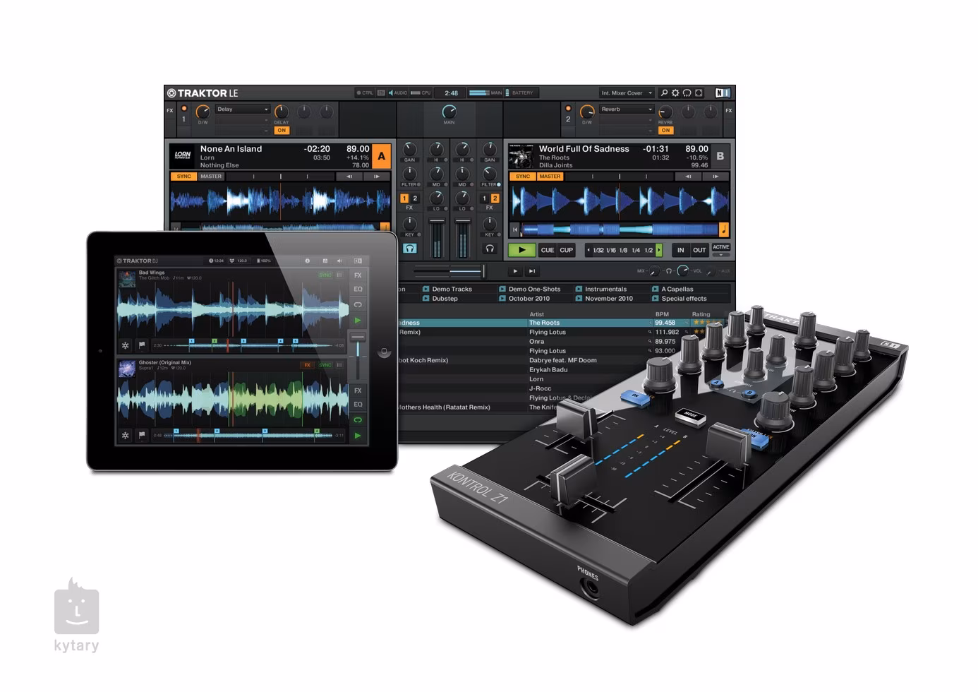 Der kompakte Zweikanal-Mixer Traktor Kontrol Z1 dient als professioneller Controller und Soundkarte für Traktor DJ- und Traktor Pro 2-Anwendungen.