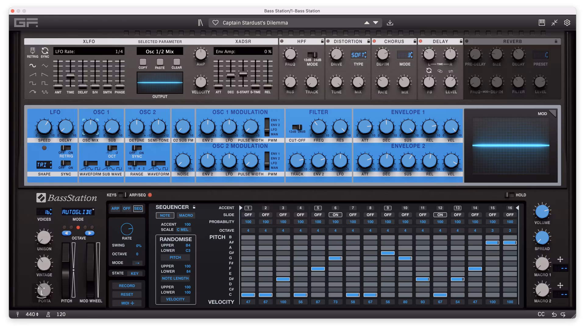 Zusätzlich zu den Standard-SW-Funktionen erhalten Sie das exklusive virtuelle Instrument GForce Bass Station, eine exakte Nachbildung des klassischen monophonen Synthesizers von Novation aus den 90er Jahren mit einer Vielzahl brandneuer Funktionen. Sie verfügen jetzt über 16 Stimmen, über 300 Presets, einen integrierten Arpeggiator und Sequenzer, Effekte und vieles mehr. Die GForce Bass Station bietet ein enormes Maß an Vielseitigkeit und kreativem Potenzial. Erhältlich als AU-, AAX-, VST- und VST3-Plugin oder als Standalone-Version für PC und Mac.