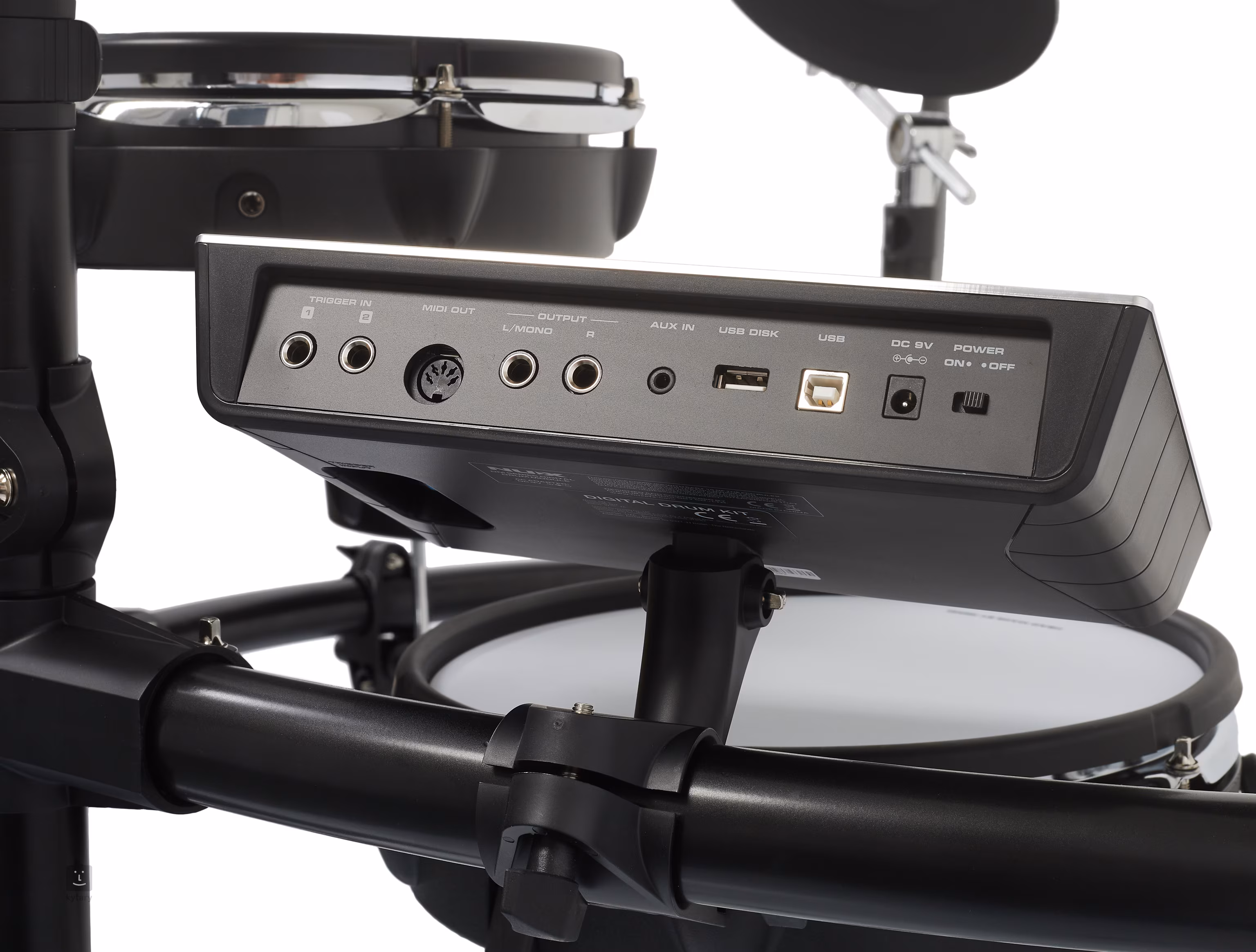 Hi-Hat auf eigenem Ständer, eine eigenständige Snare Drum, ein neuartiges, eigenständiges Basspedal mit Double-Bass-Pedal-Unterstützung - das ist nur ein kleiner Ausschnitt aus der Fülle der Möglichkeiten, die das Set bietet. Und mit der Möglichkeit, eigene Samples über ein USB-Laufwerk zu importieren, können Sie genau das Setup erstellen, das Sie wünschen.