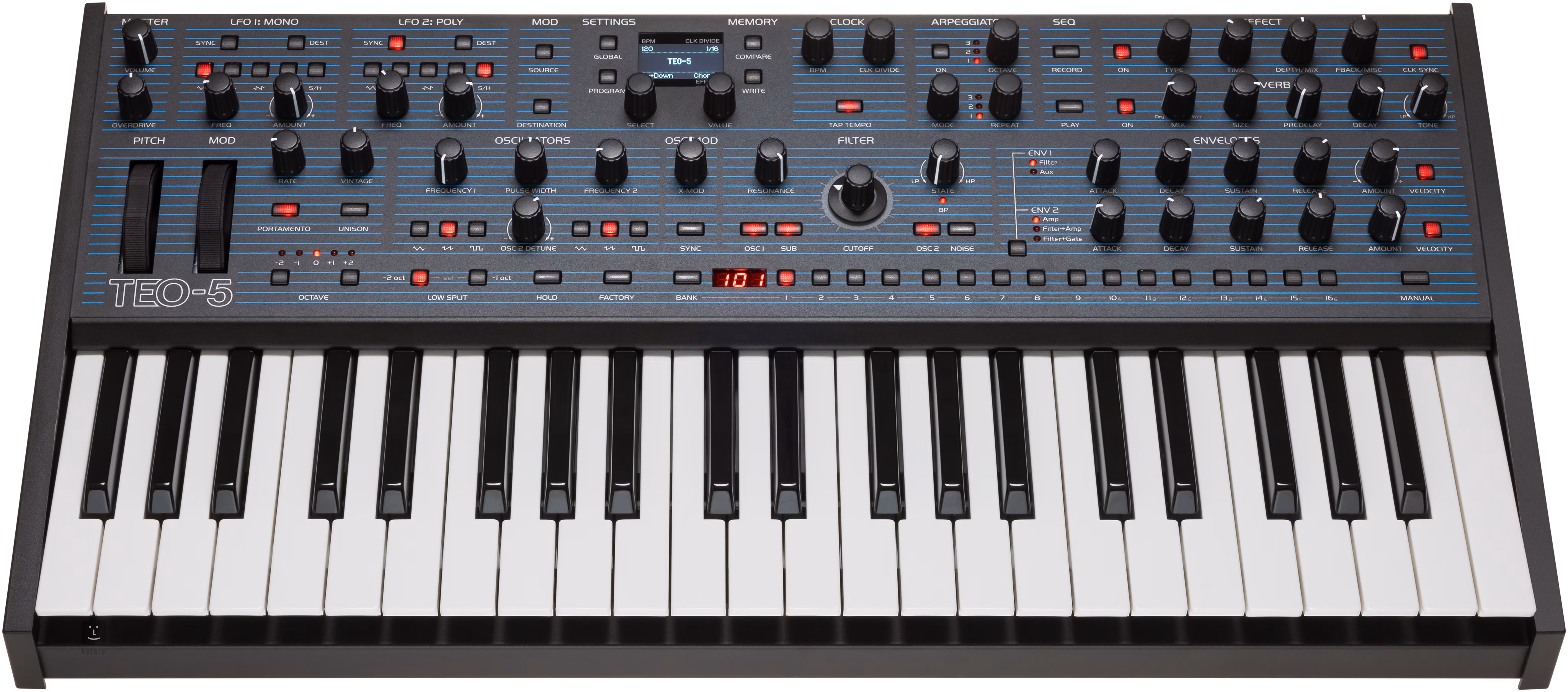 Wenn Sie die Kombination und den Charakter eines ehrlichen analogen Sounds mit modernen Möglichkeiten schätzen, ist das Oberheim TEO-5 die ideale Wahl für Ihre Produktion.