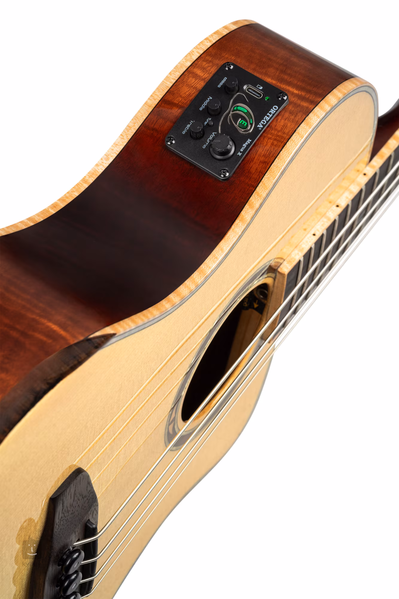 Der Ortega Ken Taylor Walker Signature 4 NAT ist ein elektro-akustischer Bass, der in Zusammenarbeit mit dem bekannten Bassisten Ken Taylor entwickelt wurde. Mit seiner kurzen 24,47"-Bohrung und dem schmaleren "Thinline"-Korpus bietet er ein komfortables Spielgefühl und ist ideal für Spieler, die eine kompaktere Größe bevorzugen.