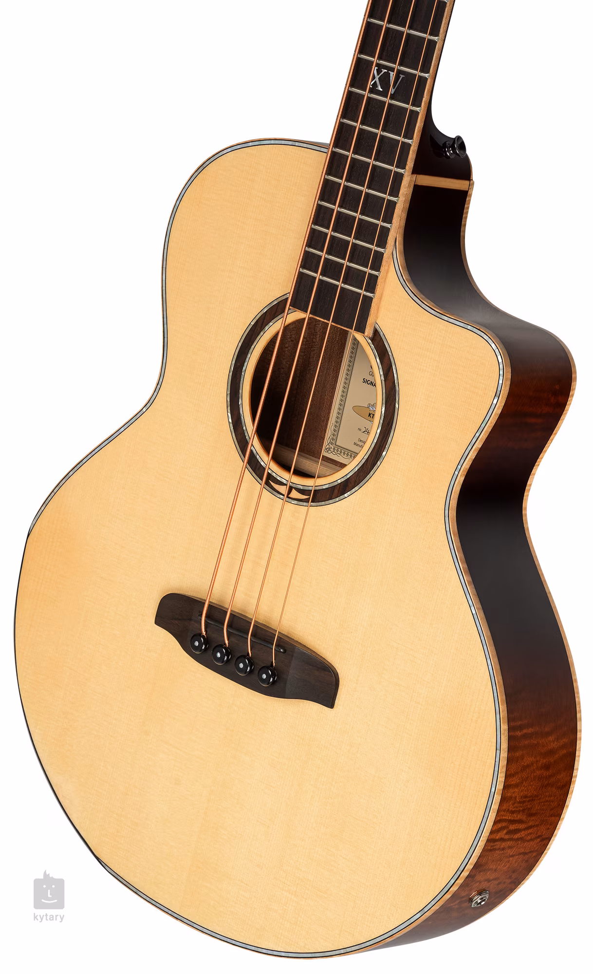Der Korpus des Basses besteht aus massiver Fichte an der Vorderseite und furniertem Mahagoni an Boden und Zargen. Das Ahorn-Finish wird durch eine Whiskey Burst-Lackierung akzentuiert. Ein Palisander-Griffbrett ist auf den Nato-Hals geleimt. Die Zwei-Wege-Halsverstrebung ermöglicht eine präzise Einstellung des Finishs. Der Spielkomfort wird durch den tieferen Cutaway, der den Zugang zu den höheren Griffbrettpositionen erleichtert, und die integrierte Armlehne auf ein höheres Niveau gehoben.