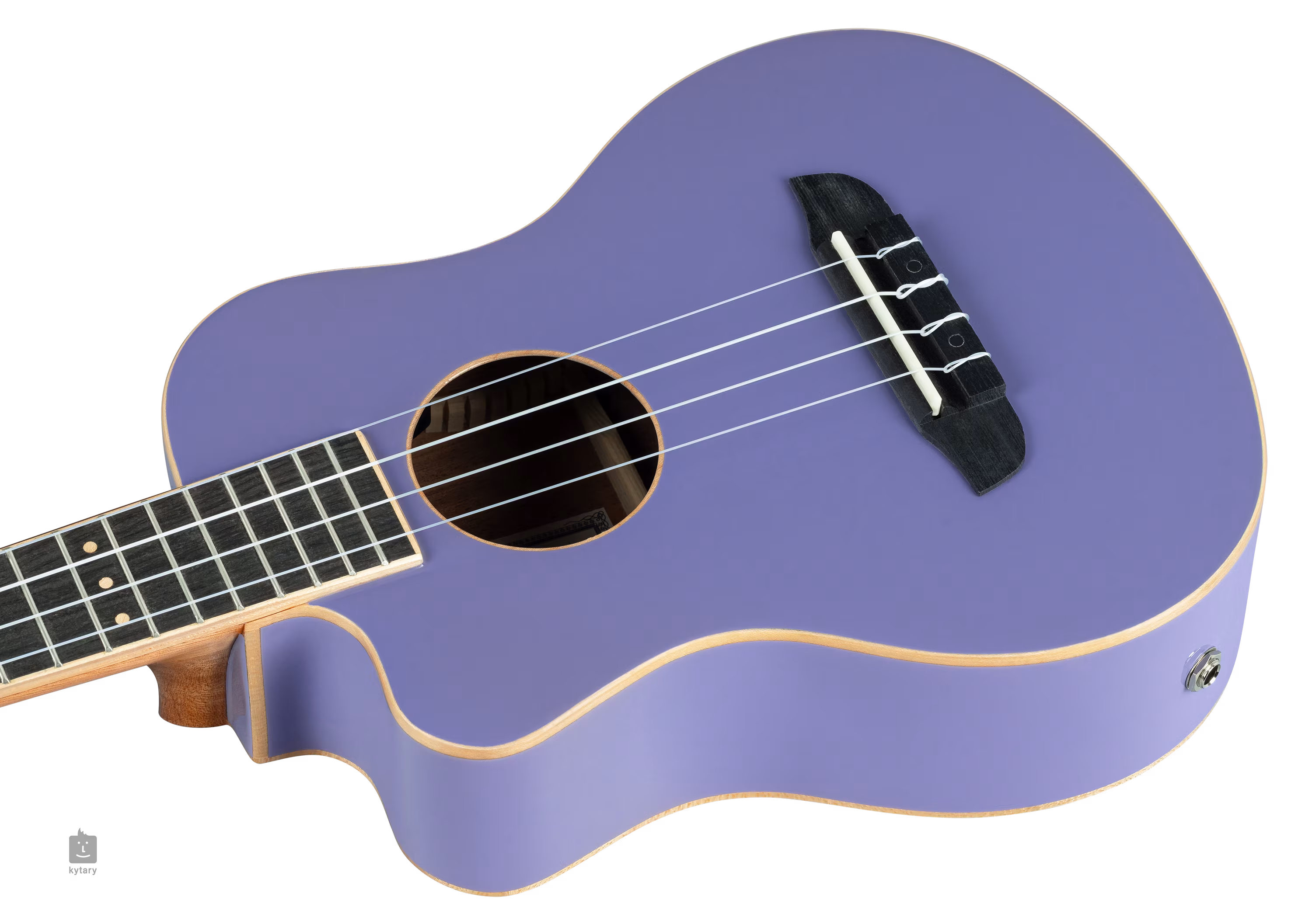 Das Vorderbrett der elektroakustischen Ukulele für Linkshänder RUHZT-CE-VP-L ist aus massivem Zedernholz, das Bodenbrett und die Zargen sind aus Sperrholz-Okoumé gefertigt. Der Okoumé-Hals ist auf ein Griffbrett aus modernem Verbundwerkstoff geklebt, das mit achtzehn Bünden versehen ist. Der untere Korpusausschnitt sorgt für eine leichte Anpassung auch in höheren Griffbrettpositionen.