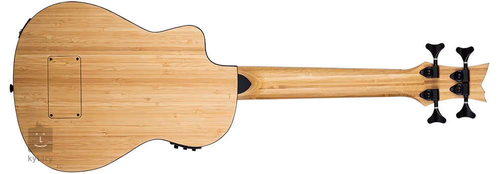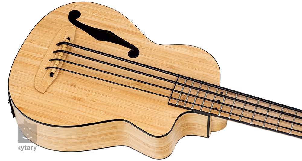 Der Korpus der RUNAB-UB Bass-Ukulele ist aus massivem Bambus gefertigt. Die Griffbrettoberfläche ist durch sechzehn Bünde unterteilt, das Matchmaking in höheren Lagen wird durch den unteren Korpusausschnitt erleichtert. Die Saiten sind in Die-Cast-Mechaniken mit schwarzen Wirbeln gelagert. Die schöne Verarbeitung wird durch die schwarze, umlaufende Korpusblende und das stilvolle, mit Paspeln verzierte F-Loch akzentuiert.
