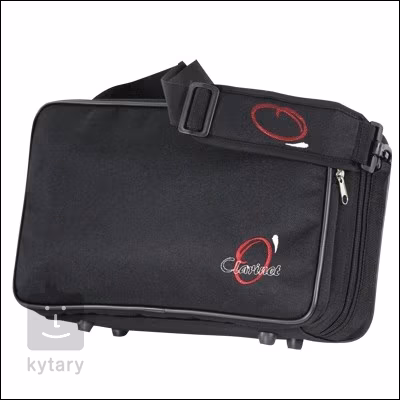 Klarinettenkoffer aus strapazierfähigem Kunststoffgewebe (Polyester). Ausgestattet mit einer Außentasche für kleines Zubehör, Innenpolsterung mit Seidenfutter, Tragegriff, Schulterriemen und Reißverschluss.