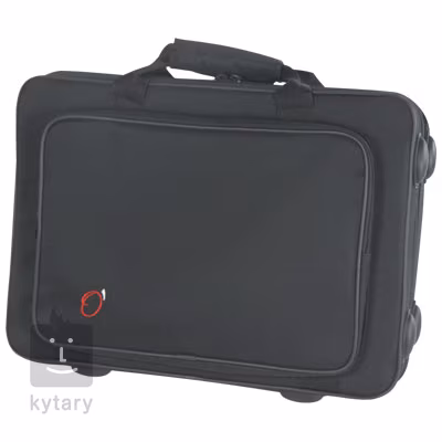 Clarinet case made from plastified polyester. It features black velour lining, external pocket, inner space filled/shaped with polyurethane and ABS, handle, shoulder strap and zipper enclosure.