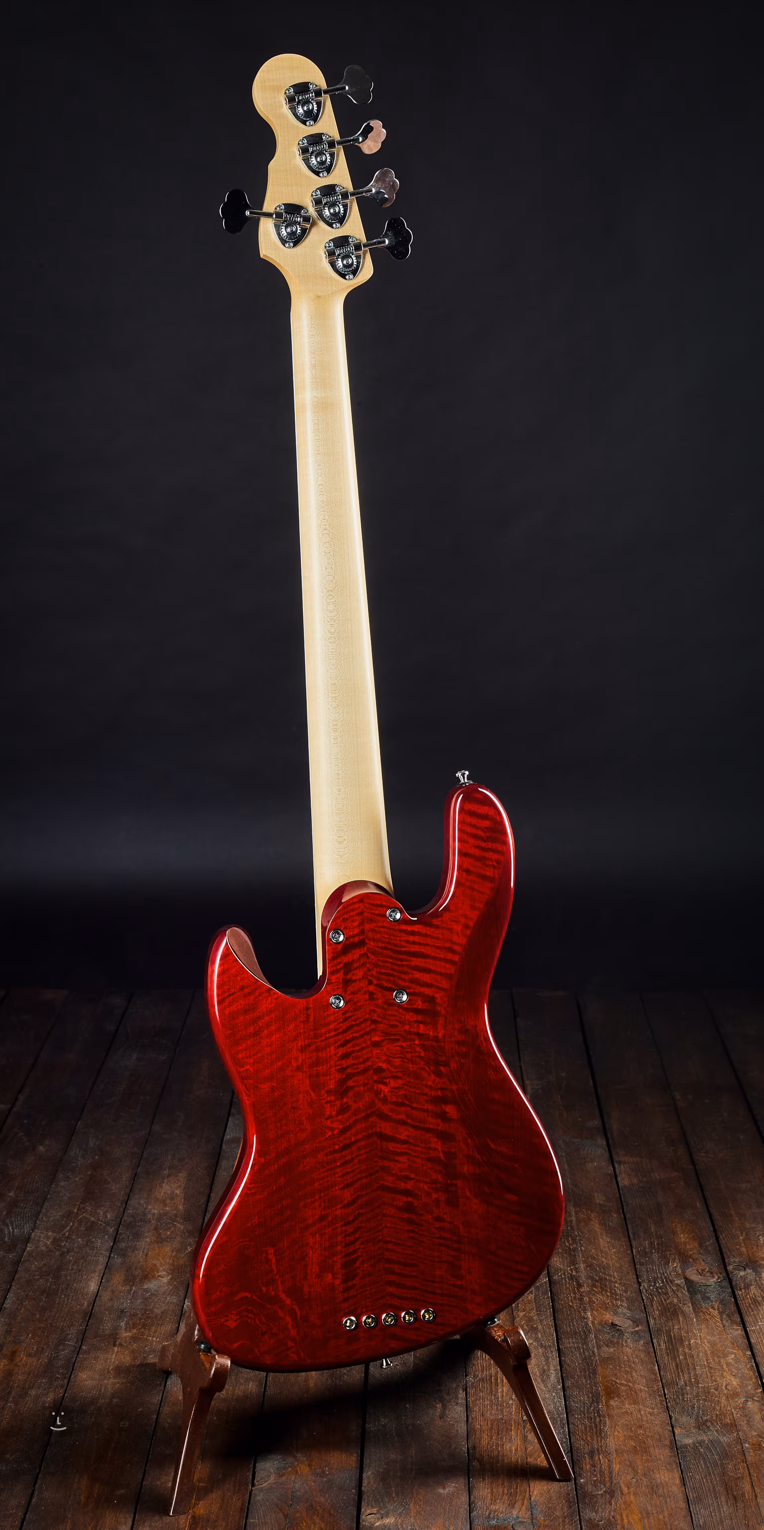 Dieser fünfsaitige passive Jazzbass ist als luxuriöser Allround-Bass gebaut, der jedes Musikgenre bedienen kann. Der Hals ist aus viertelgesägtem Ahorn, das Griffbrett aus Palisander mit Binding.