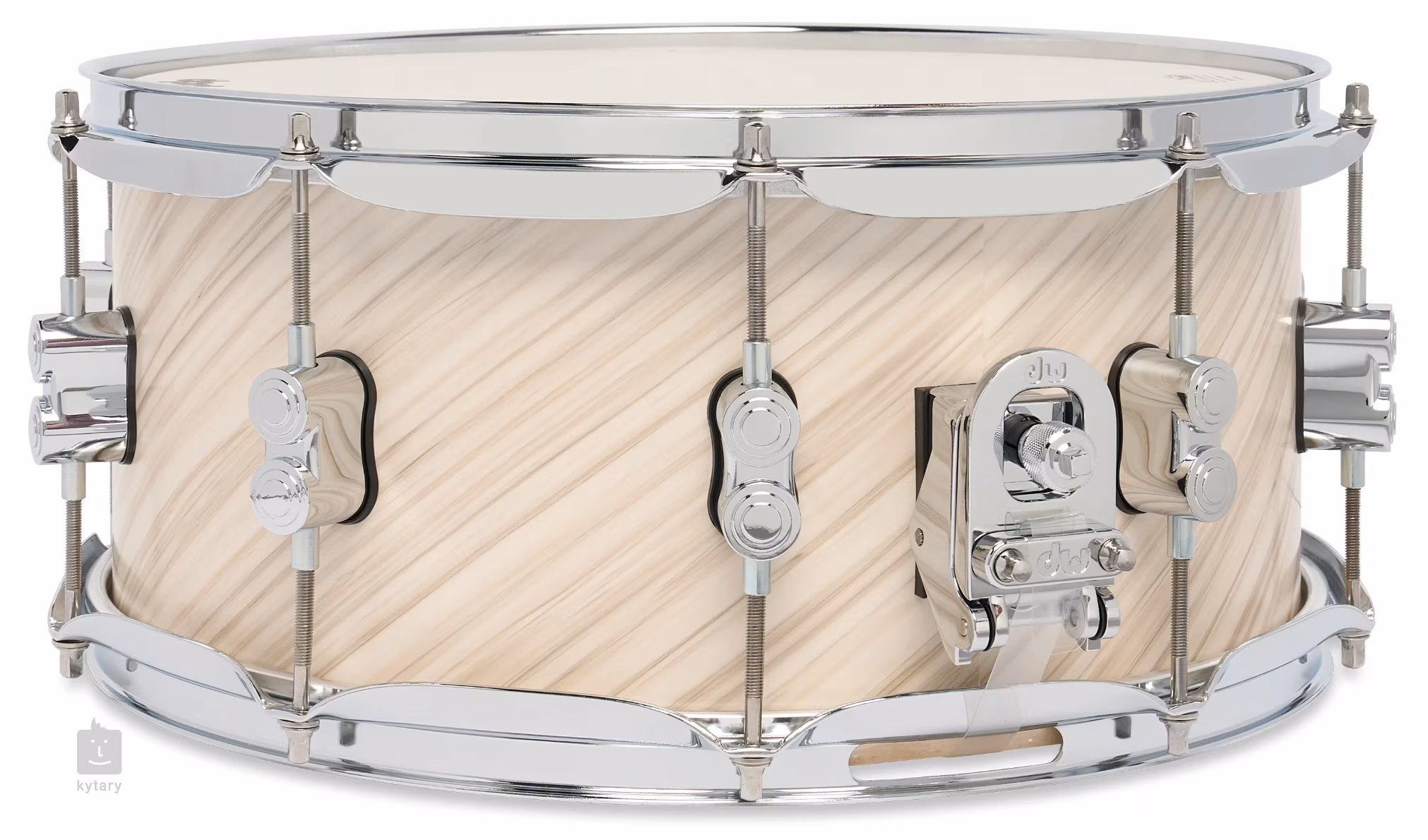 Die Trommel ist mit einem DW MAG Abwurfmechanismus ausgestattet, der eine schnelle und einfache Kontrolle der Snare Drähte ermöglicht. Die Doppelturmkessel verleihen der Trommel einen Retro-Look, während die True Pitch Stimmschrauben eine präzise Stimmeinstellung ermöglichen und die Stimmstabilität auch bei intensivem Spiel erhalten. Diese Details sorgen nicht nur für Zuverlässigkeit, sondern auch für maximalen Komfort beim Spielen.