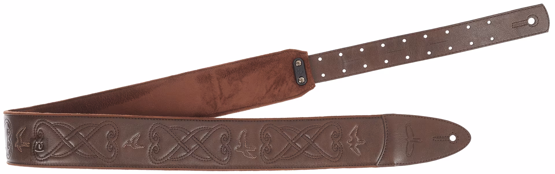 PRS hat einen luxuriösen Gurt für Gitarren und Bässe entwickelt, der mit seinem gestickten Muster aus fliegenden Vögeln auf den ersten Blick ins Auge sticht. Er ist aus hochwertigem veganem Leder gefertigt, das in Optik und Haptik echtem Leder sehr ähnlich ist und nicht nur für eine stilvolle Optik, sondern auch für Geschmeidigkeit und Komfort auch bei längerem Spielen sorgt.