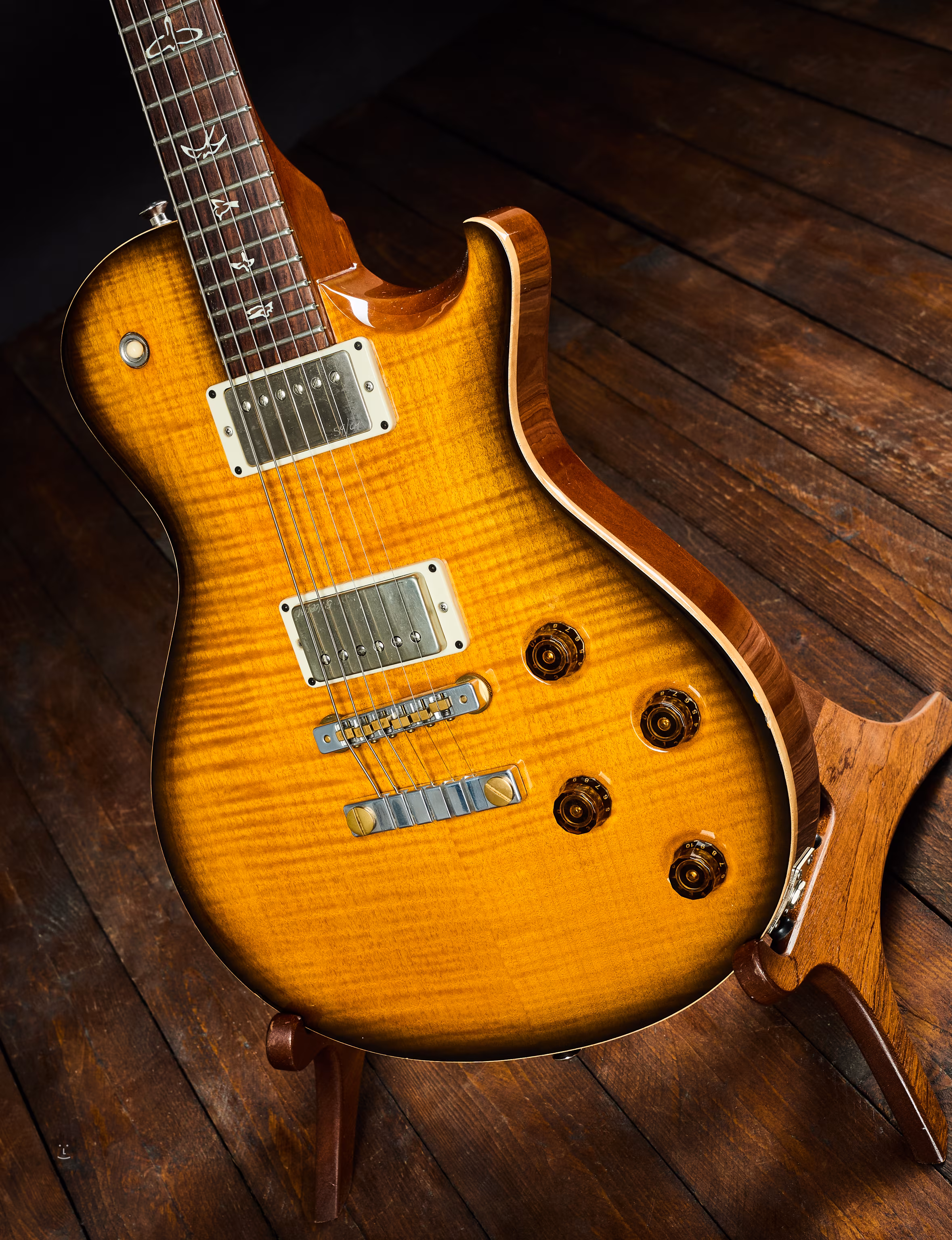 Im Vergleich zum Originalzustand wurde bei der Gitarre der Halstonabnehmer ausgetauscht - PRS 59/09, der Halstonabnehmer PRS 57/08 ist original.