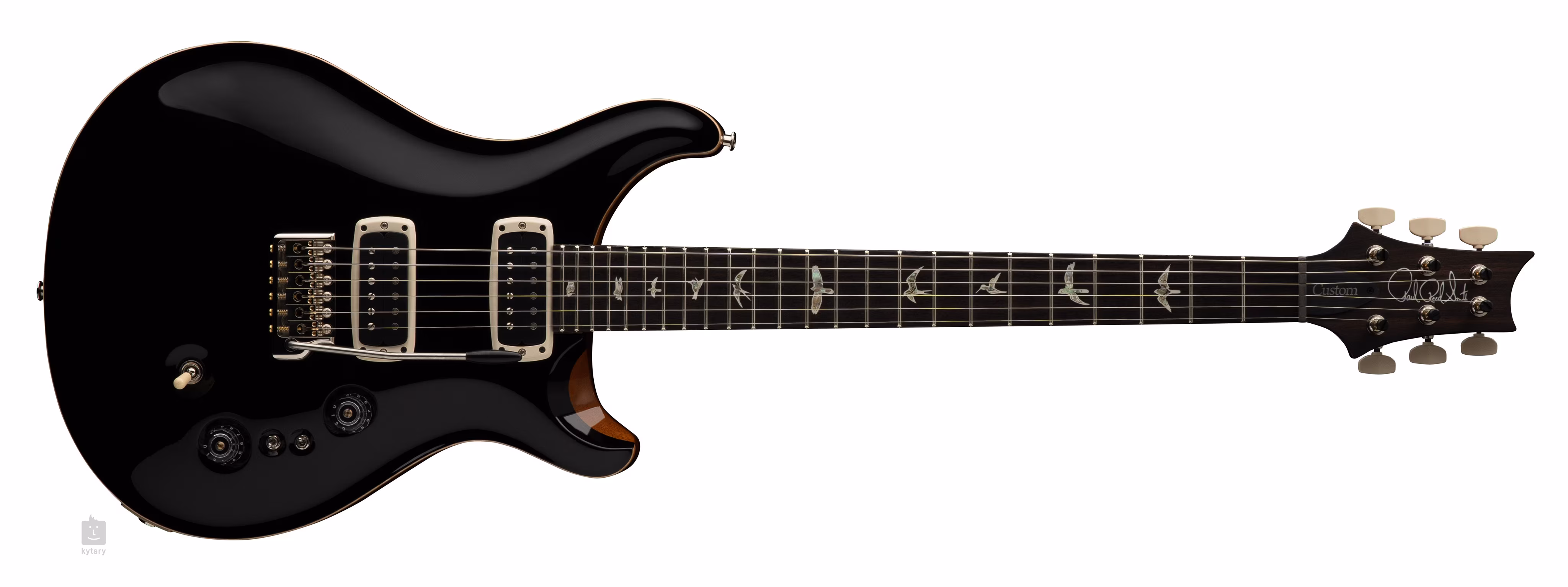 Das Modell Custom 24-08 Black Top (Natural Back) besticht auf den ersten Blick durch seine Kombination aus schwarz glänzender Ahorndecke und Mahagonikorpus. Auf den einteiligen Mahagoni-Hals mit Pattern Thin-Profil ist ein Palisander-Griffbrett mit vierundzwanzig Bünden geleimt. Die Orientierung auf dem Griffbrett wird durch die PRS-typischen Positionsmarkierungen in Form von perlmuttfarbenen Vogelsilhouetten erleichtert.