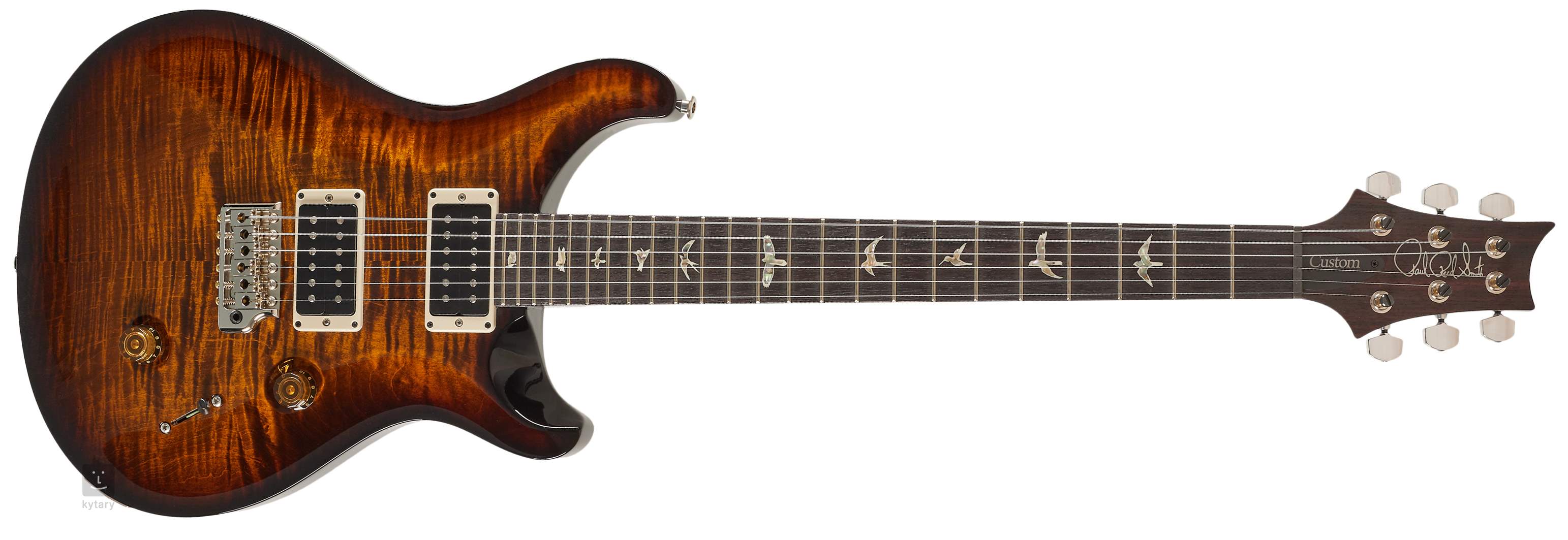 Das Modell Custom 24 bietet eine Kombination aus einem massiven, ergonomisch geformten Mahagonikorpus mit dem typischen PRS-Double-Cutaway und einer Ahorndecke. Auf den Mahagoni-Hals mit Pattern Thin-Profil ist ein Palisander-Griffbrett geklebt, das mit den typischen Positionsmarkierungen in Form von Vogelsilhouetten verziert ist.