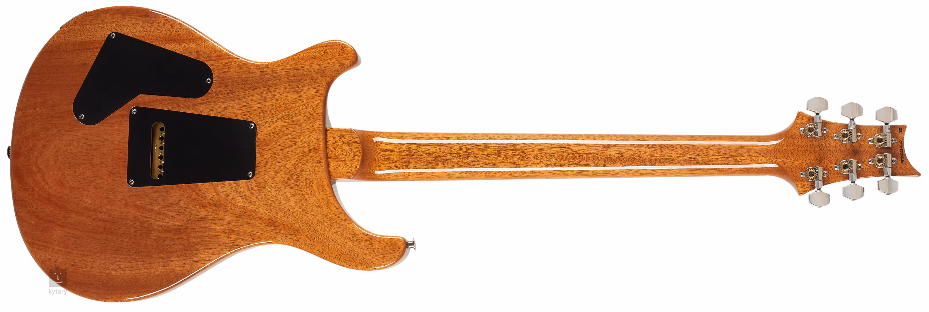 Das Modell Custom 24 bietet eine Kombination aus einem massiven, ergonomisch geformten Mahagonikorpus mit dem typischen PRS-Double-Cutaway und einer Ahorndecke. Auf den Mahagoni-Hals mit Pattern Thin-Profil ist ein Palisander-Griffbrett geklebt, das mit den typischen Positionsmarkierungen in Form von Vogelsilhouetten verziert ist.