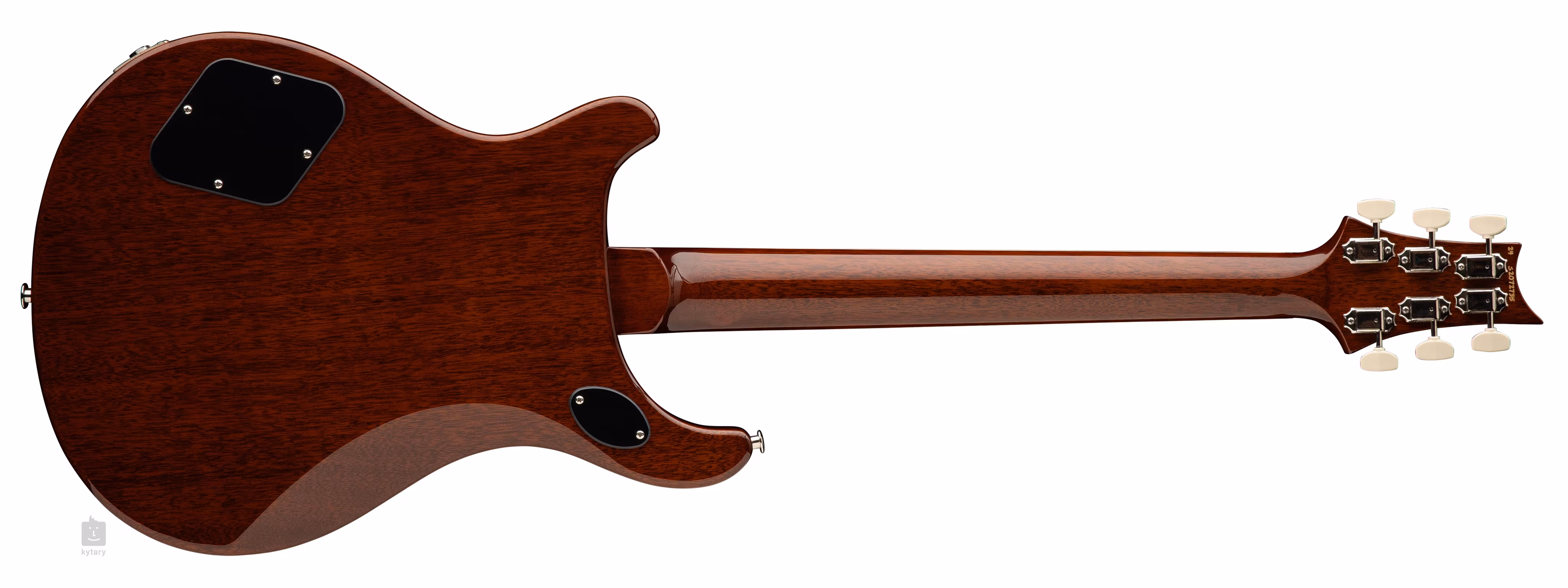 Den Mahagonikorpus der S2 McCarty 594 Honey Gold Burst mit dem charakteristischen PRS-Double-Cut-Design ziert eine Ahorndecke mit einem eindrucksvollen Muster, das durch die Glanzlackierung und die gewählte Farbgebung noch betont wird. Dank des breiteren Mahagoni-Bodens hat die Gitarre einen vollen Ton und ein sattes Sustain, während die deutlich abgeschrägten Korpuskanten die allgemeine Spielergonomie fördern.