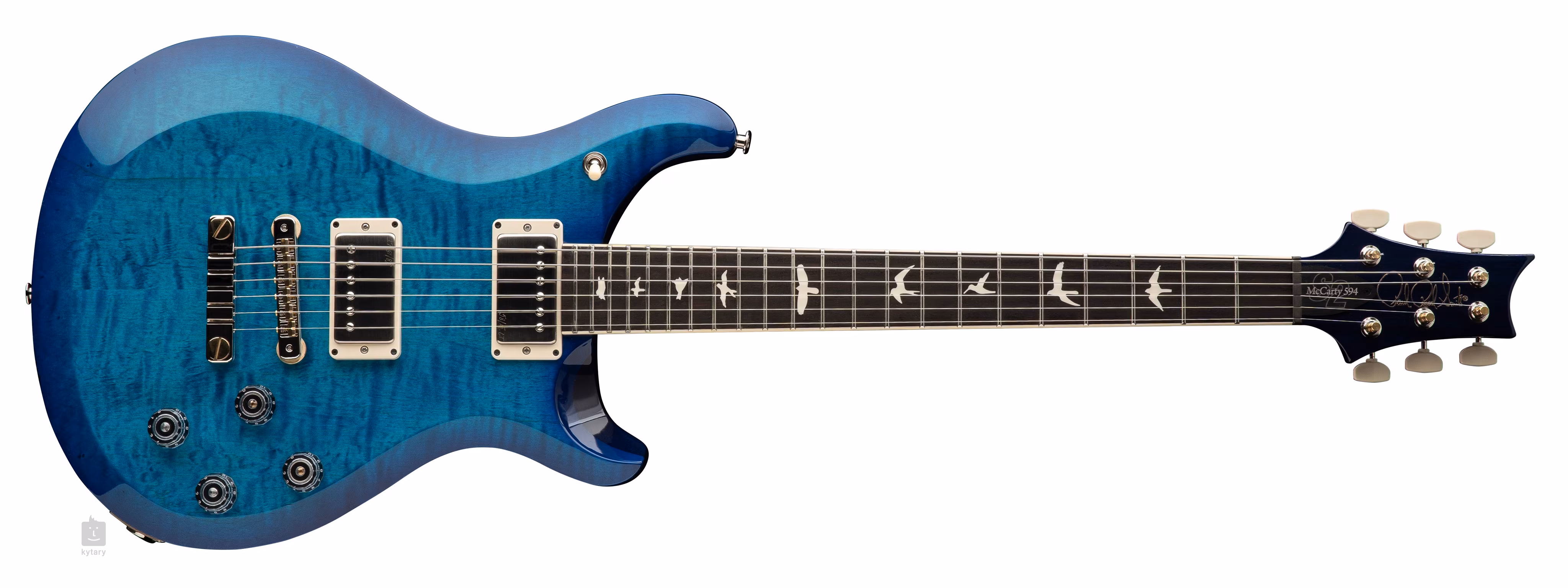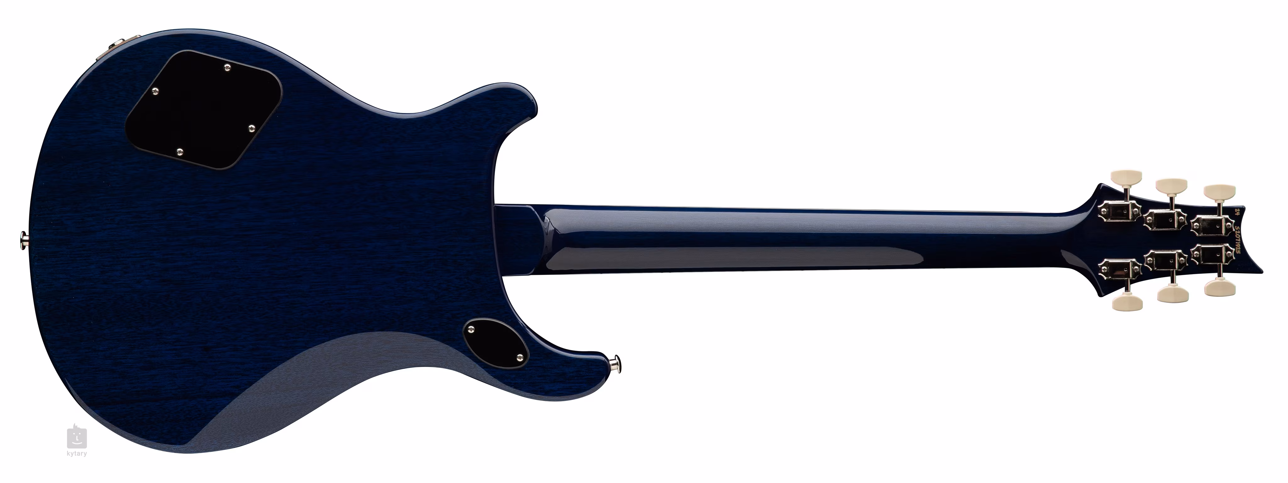 Den Mahagonikorpus der S2 McCarty 594 ake Blue mit dem charakteristischen PRS-Double-Cut-Design ziert eine Ahorndecke mit einem beeindruckenden Muster, das durch die Glanzlackierung und die gewählte Farbgebung noch betont wird. Dank des breiteren Mahagoni-Bodens hat die Gitarre einen vollen Ton und ein sattes Sustain, während die deutlich abgeschrägten Korpuskanten die gesamte Spielergonomie fördern.