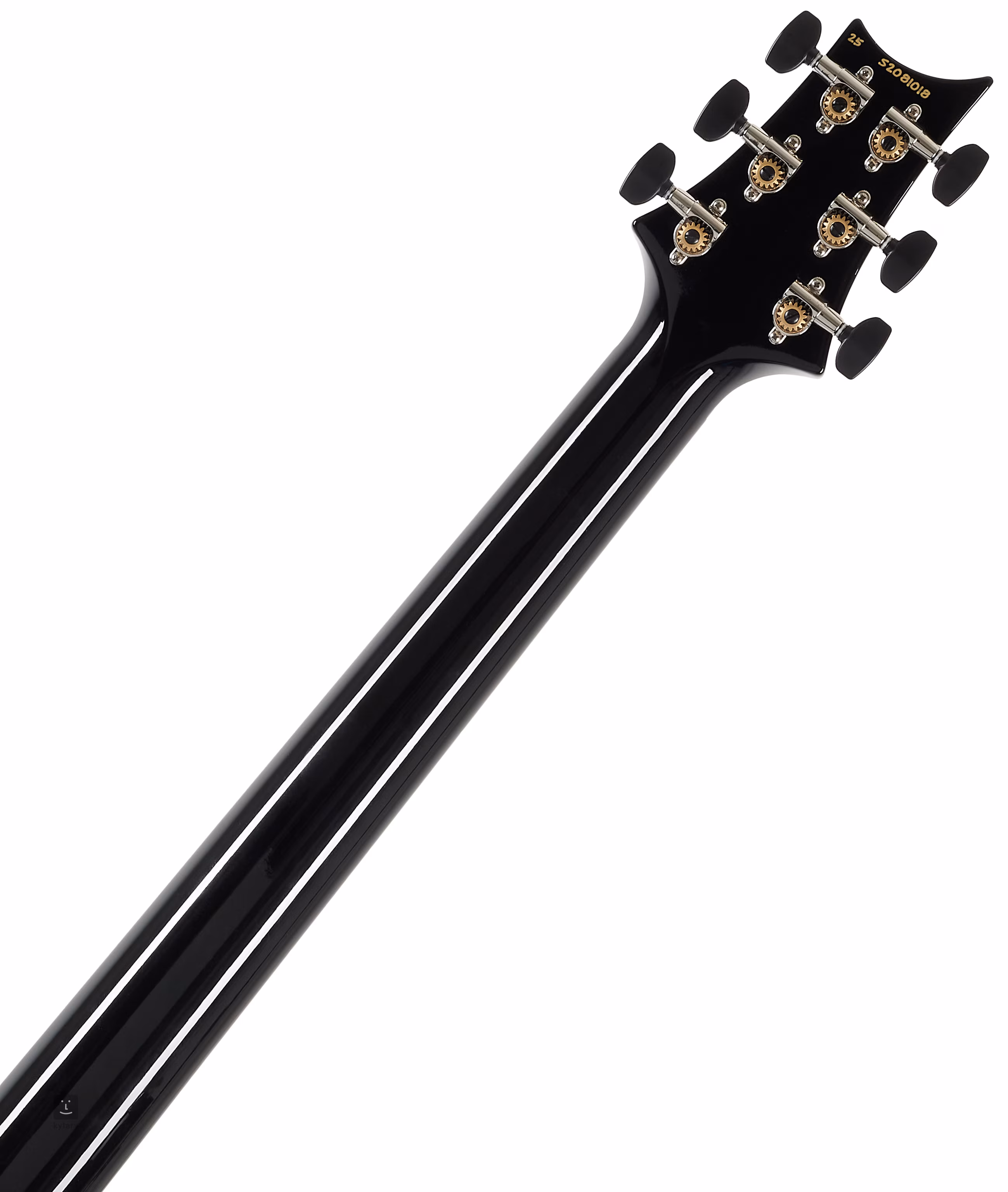 Der Mahagonikorpus der S2 Vela Black ist mit einer glänzenden Nitrolackierung und einer Farbe nach Wahl verziert. Ein Palisander-Griffbrett mit zweiundzwanzig Bünden ist auf den Mahagoni-Hals mit Pattern Regular-Profil geleimt. Positionsmarkierungen in Form von perlmuttfarbenen Vogelsilhouetten erleichtern die Orientierung auf dem Griffbrett.