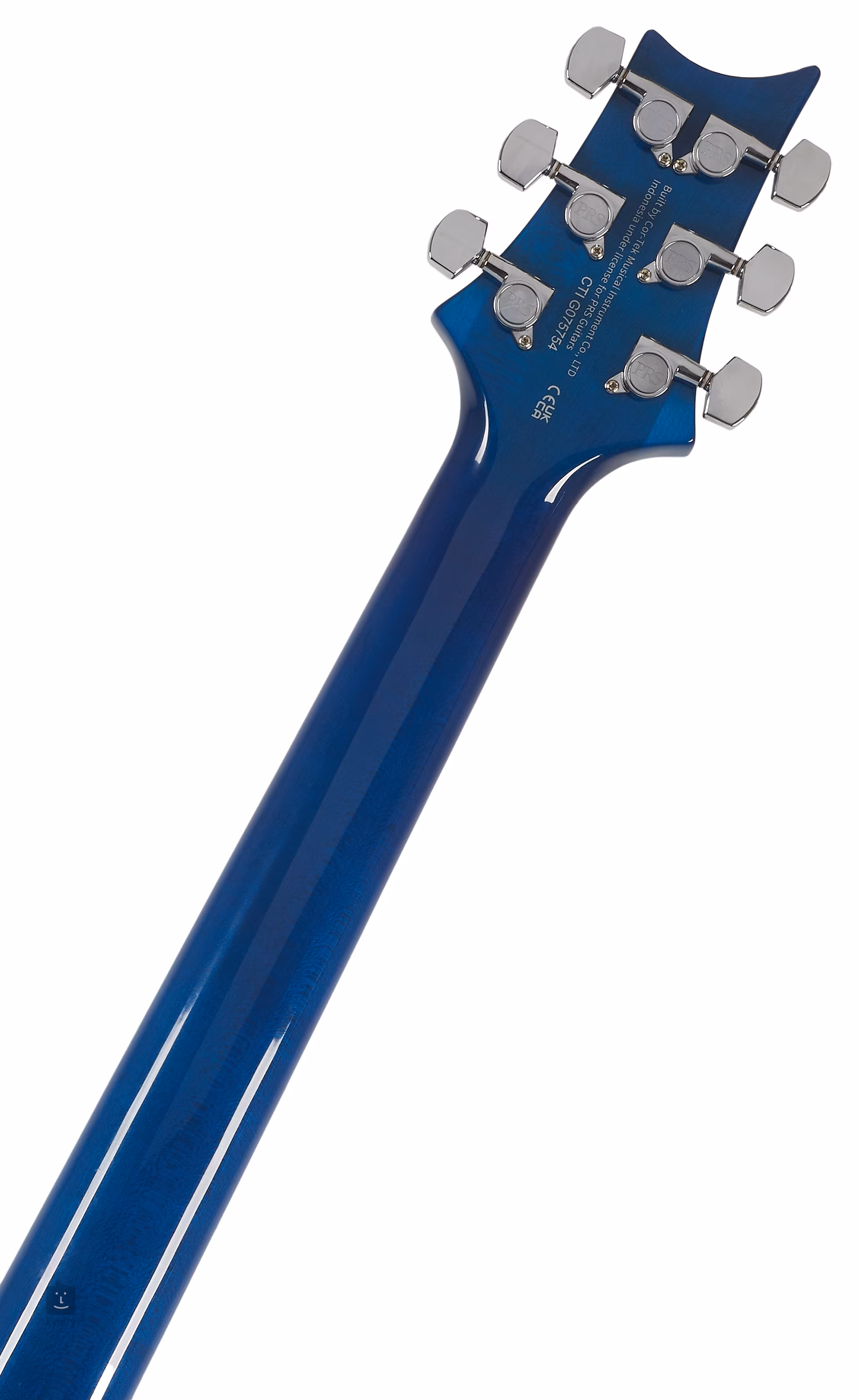 Der Mahagonikorpus der SE Custom 24 Semi-Hollow Piezo Lake Blue ist mit einer Ahorndecke und einem edlen Furnier aus geflammtem Ahorn verziert. Das Shallow Violin Carve bringt die Spielqualität des Instruments näher an die teureren Modelle der American Core Series. Ein Palisandergriffbrett mit vierundzwanzig Bünden ist auf einen Ahornhals mit Wide Thin-Profil geleimt. Positionsmarkierungen in Form von Vogel-Silhouetten aus Perlmutt erleichtern die Orientierung auf dem Griffbrett.