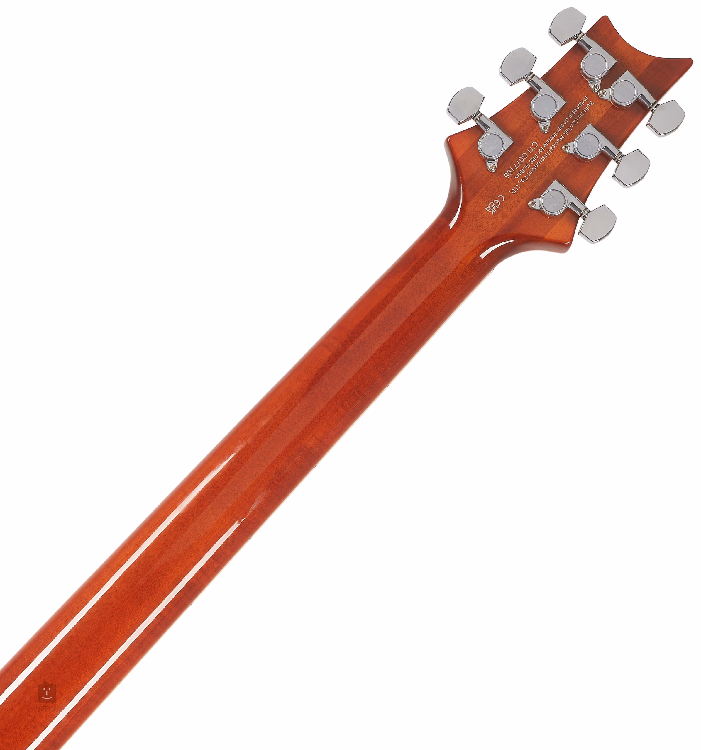 Der Mahagonikorpus der SE Custom 24 Semi-Hollow Piezo Vintage Sunburst ist mit einer Ahorndecke und einem edlen Furnier aus geflammtem Ahorn verziert. Das Shallow Violin Carve bringt die Spielqualität des Instruments näher an die teureren Modelle der American Core Series. Ein Palisandergriffbrett mit vierundzwanzig Bünden ist auf einen Ahornhals mit Wide Thin-Profil geleimt. Positionsmarkierungen in Form von Vogel-Silhouetten aus Perlmutt erleichtern die Orientierung auf dem Griffbrett.