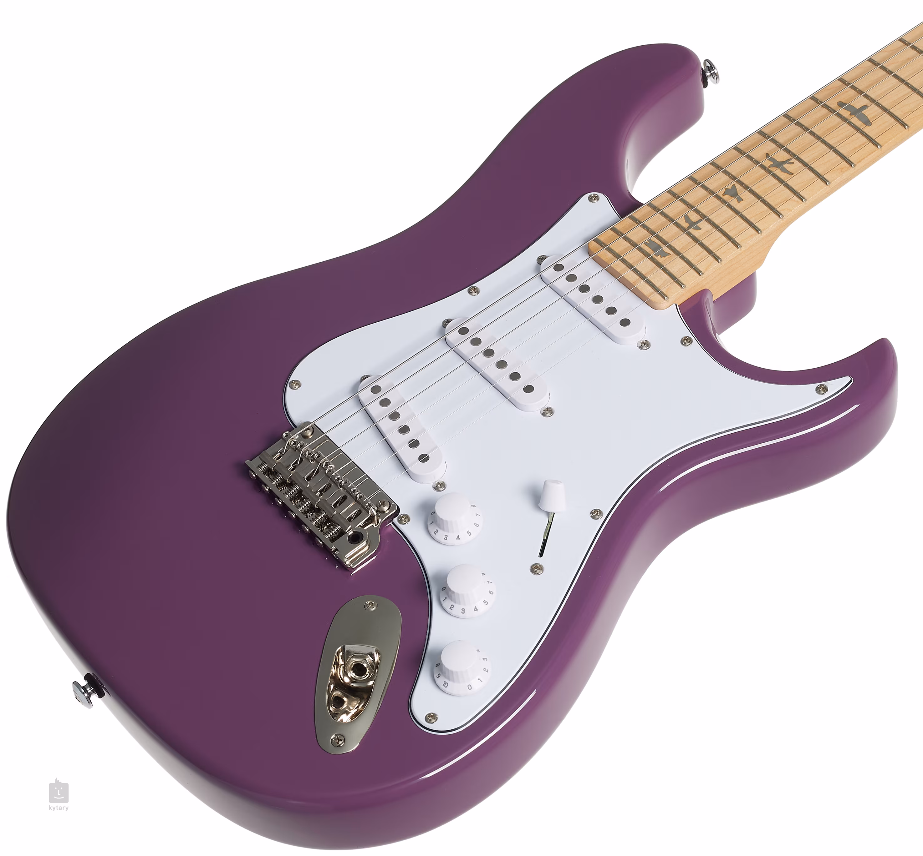 Der Korpus der PRS SE Silver Sky Maple Summit Purple Gitarre ist aus Pappelholz gefertigt. Der geschraubte Ahornhals weist das originale 635JM Cutaway/Profil auf, wobei die Oberfläche des Ahorngriffbretts durch 22 Bünde und Positionsmarkierungen in Form von Vogelsilhouetten unterteilt ist.