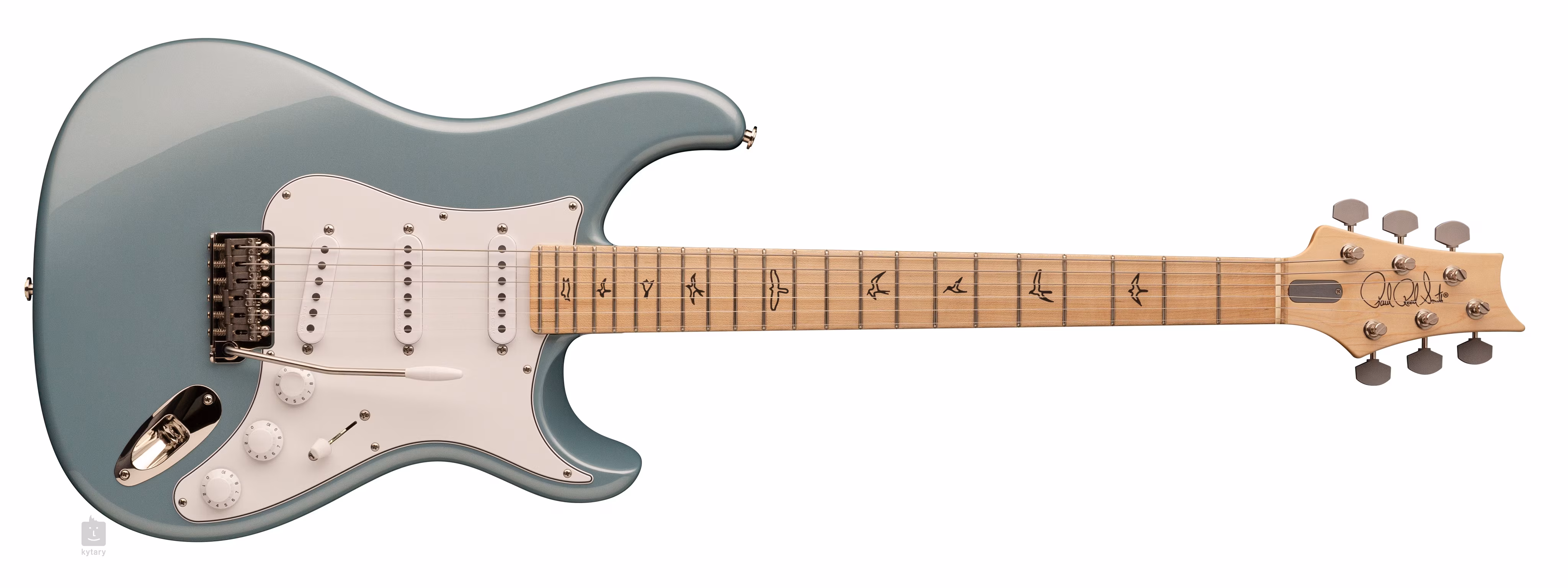 Die Stimmstabilität wird durch die Befestigung der Saiten an der arretierbaren Vintage-Mechanik und das Stahltremolo gewährleistet, das mit PRS-Elementen in Form eines Tremolohebels und Gen III-Schrauben (Messerschneide) angereichert ist. Zu den weiteren Besonderheiten des Instruments gehören eine Kopfplatte mit dem für PRS typischen invertierten Design, ein Griffbrett aus Knochen oder eine signierte Halsplatte. Das stilvolle Finish wird durch ein weißes Schlagbrett akzentuiert.