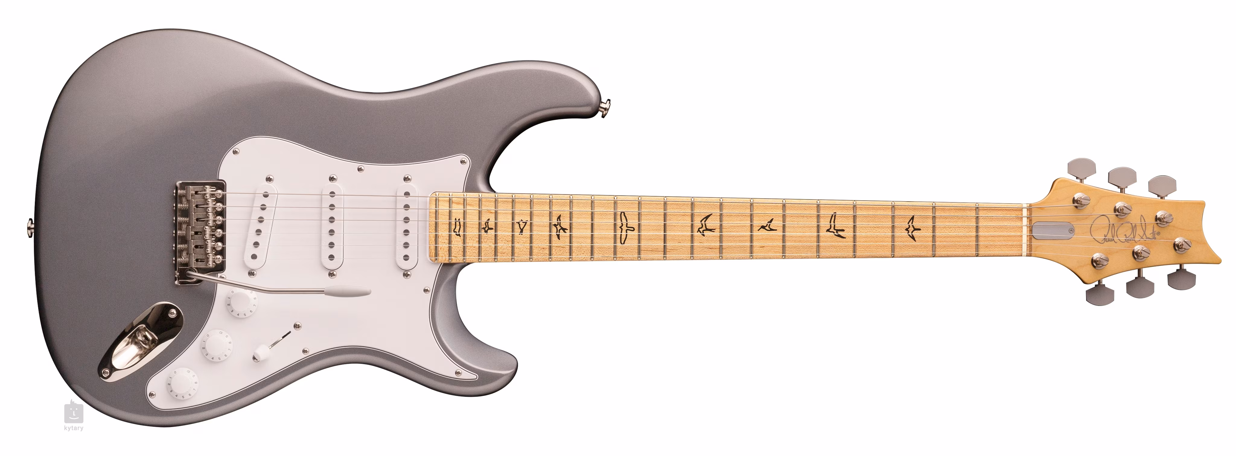 Die Stimmstabilität wird durch die Befestigung der Saiten an der arretierbaren Vintage-Mechanik und das Stahltremolo gewährleistet, das mit PRS-Elementen in Form eines Tremolohebels und Gen III-Schrauben (Messerschneide) angereichert ist. Zu den weiteren Besonderheiten des Instruments gehören eine Kopfplatte mit dem für PRS typischen invertierten Design, ein Griffbrett aus Knochen oder eine signierte Halsplatte. Das stilvolle Finish wird durch ein weißes Schlagbrett akzentuiert.