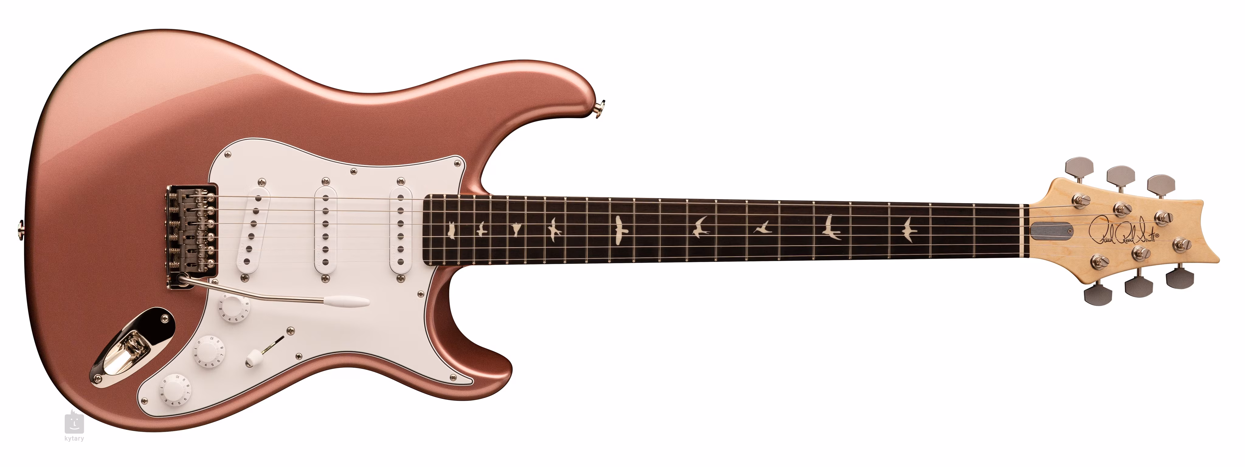 Die Stimmstabilität wird durch die Befestigung der Saiten an der arretierbaren Vintage-Mechanik und das Stahltremolo gewährleistet, das mit PRS-Elementen in Form eines Tremolohebels und Gen III-Schrauben (Messerschneide) angereichert ist. Zu den weiteren Besonderheiten des Instruments gehören eine Kopfplatte mit dem für PRS typischen invertierten Design, ein Griffbrett aus Knochen oder eine signierte Halsplatte. Das stilvolle Finish wird durch ein weißes Schlagbrett akzentuiert.