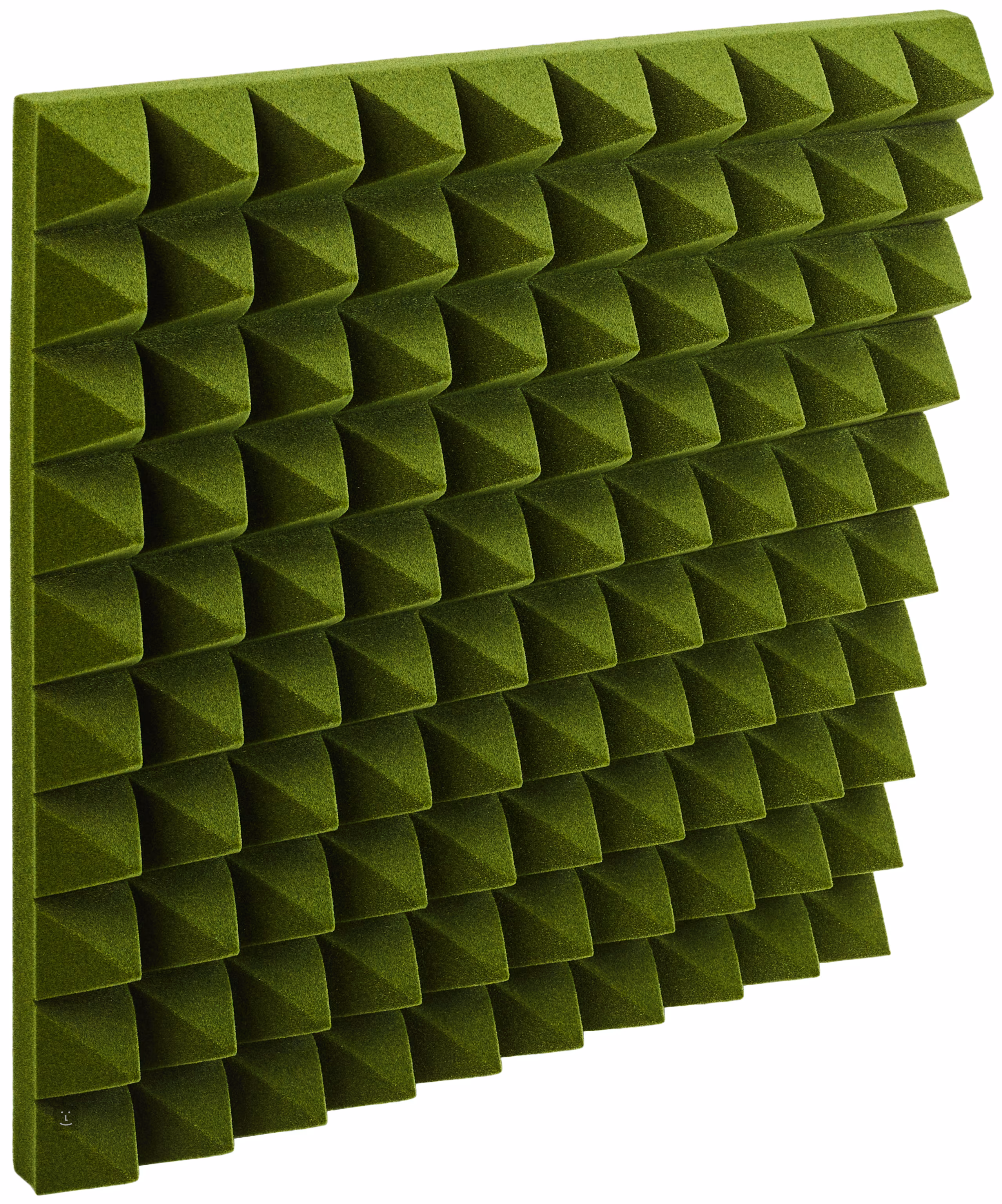 Pyramid 50mm Green Akustikschaum bietet eine wirksame und zugleich attraktive Lösung für die Raumakustik in Form von Schaumstoffplatten mit einem Nadelmuster von 50 x 50 cm und einer Dicke von 5 cm. Dies ist eines der beliebtesten Designs und lässt sich gut mit einem anderen Muster in größeren Bereichen kombinieren, wenn Sie eine bessere Wirkung erzielen wollen. Die akustische Absorptionsleistung dieser Platte spiegelt sich in der Dämpfung vor allem in den mittleren und höheren Frequenzen wider.