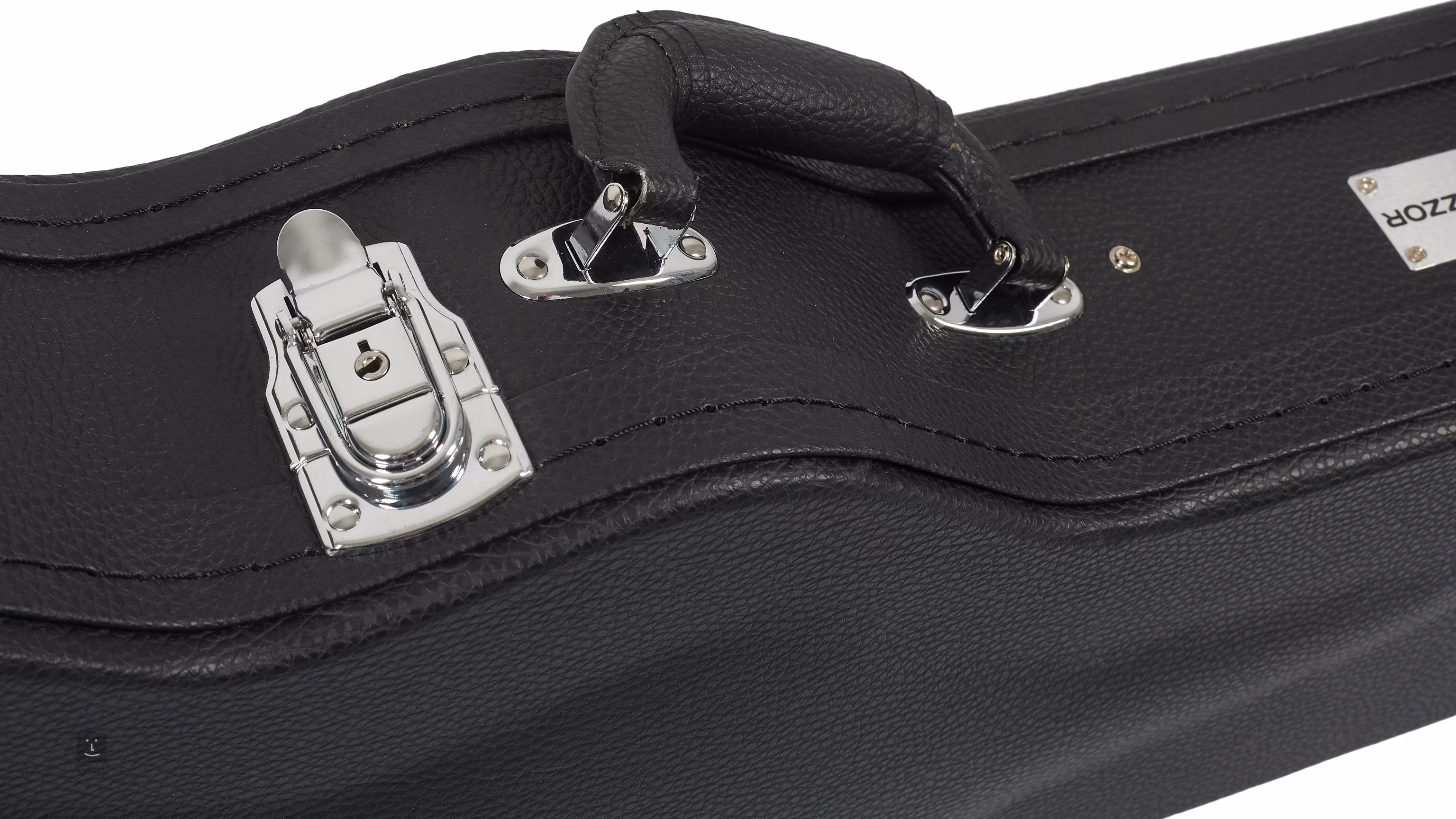 Razzor-Koffer bieten in ihrer Preisklasse einen hervorragenden Schutz für Ihr Instrument. Sie bestehen aus PVC-beschichtetem, fünflagigem Sperrholz, so dass Ihre wertvolle Fracht im Inneren durch nichts beeinträchtigt wird - sei es durch schlechtes Wetter, ungeschickten Transport oder ungeschickte Mitspieler. Darüber hinaus sorgt die interne Halsfixierung dafür, dass das Instrument stets in einer stabilen Position bleibt. Ein Fach für wichtiges Zubehör und ein Schlüsselschloss sind ebenfalls eine Freude.