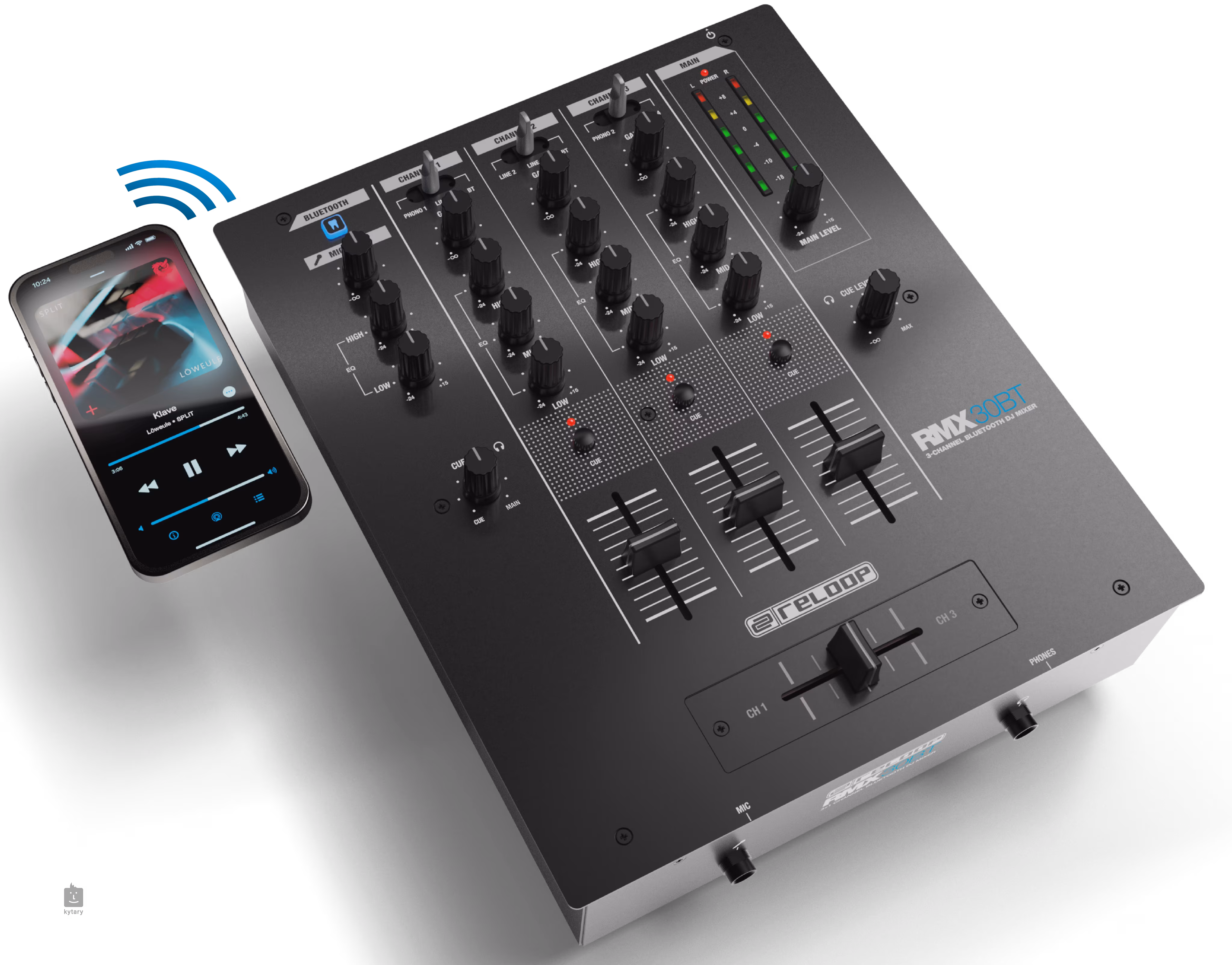 Der Reloop RMX-30 BT ist ein vielseitiges Drei-Kanal-DJ-Mischpult mit integriertem Bluetooth und einem robusten Design, das sich sowohl für Anfänger und Hobbyisten als auch für erfahrene DJs eignet.