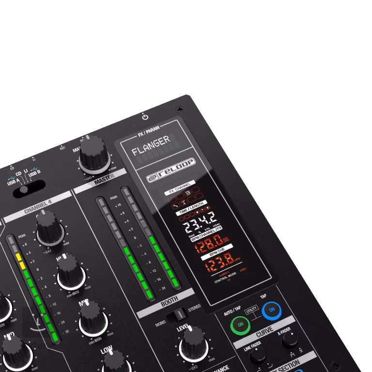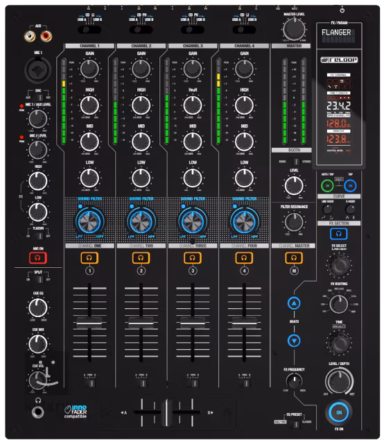 Das Reloop RMX-95 ist ein professionelles 4-Kanal-Mischpult, das überragenden Sound, leistungsstarke Funktionen und ein robustes Design bietet. Mit diesem Mischpult können Sie Musik mit hoher Klangqualität und einer breiten Palette von Optionen präzise abmischen und neu abmischen.