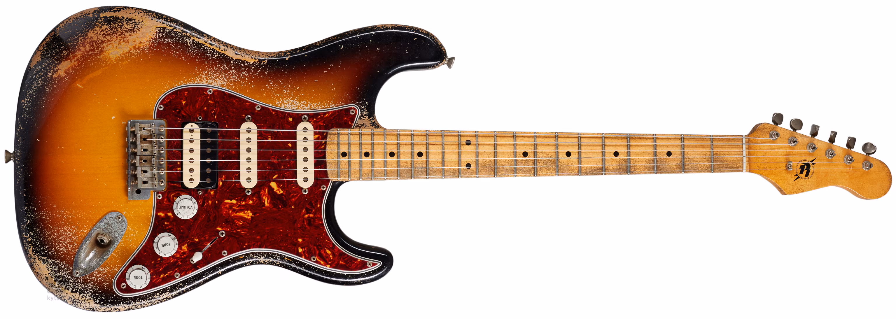Werkzeug des Erstbesitzers aus dem Jahr 2022. Klassische Strat in HSS-Konfiguration; in "Heavy Aged" Relic-Finish.