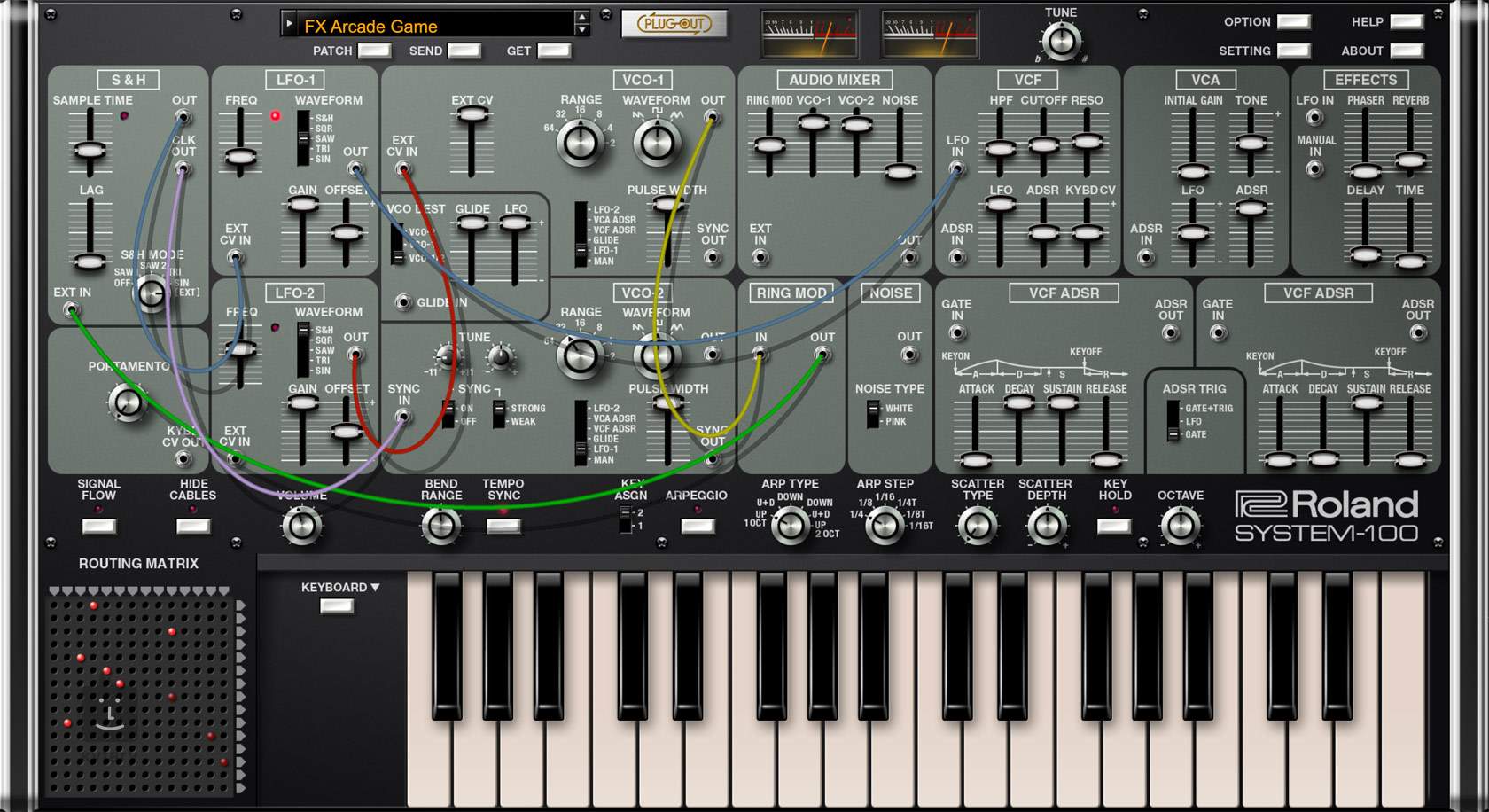 Das Herzstück des SYSTEM-100 sind zwei VCO-Oszillatoren, zwei LFOs, ein Ringmodulator, ein Rauschgenerator und eine Sample & Hold-Funktion, die allein schon eine leistungsstarke Kombination für dicke Bässe, knackige Leads oder Ambient-Texturen darstellen. Dank der integrierten 14x15-Routing-Matrix können Sie im Handumdrehen komplexe Audiopfade erstellen, die Verbindungen zwischen den Modulen visuell überwachen und einzelne Routings in Echtzeit ein- oder ausschalten, ohne sie aus den Augen zu verlieren.