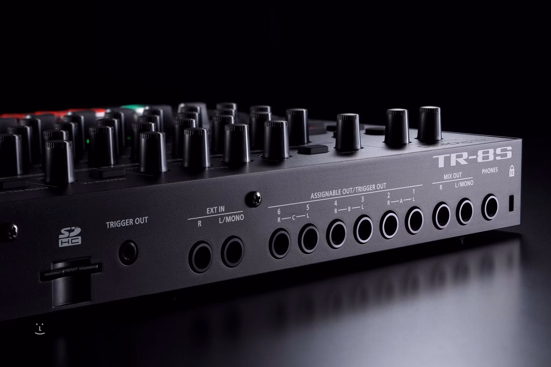 Trigger-Ausgang und externer Eingang Die TR-8S verfügt über einen fest zugeordneten Trigger-Ausgang sowie Stereo-Audio-Eingänge für externe Signalquellen. Darüber hinaus kannst du auch die zuweisbaren Ausgänge als zusätzliche Trigger-Ausgänge nutzen. Auf diese Weise kannst du externe Instrumente steuern und diese mit den internen Sounds der TR-8S mischen, um deine kreativen Möglichkeiten live und im Studio enorm zu erweitern. Jedes Pattern bietet einen festen Trigger-Track, mit dem du alle möglichen Variationen realisieren kannst, ohne ein zusätzliches Instrument zu verbrauchen. Rim-Shots und getriggerte Analogbass-Patterns? Kein Problem.