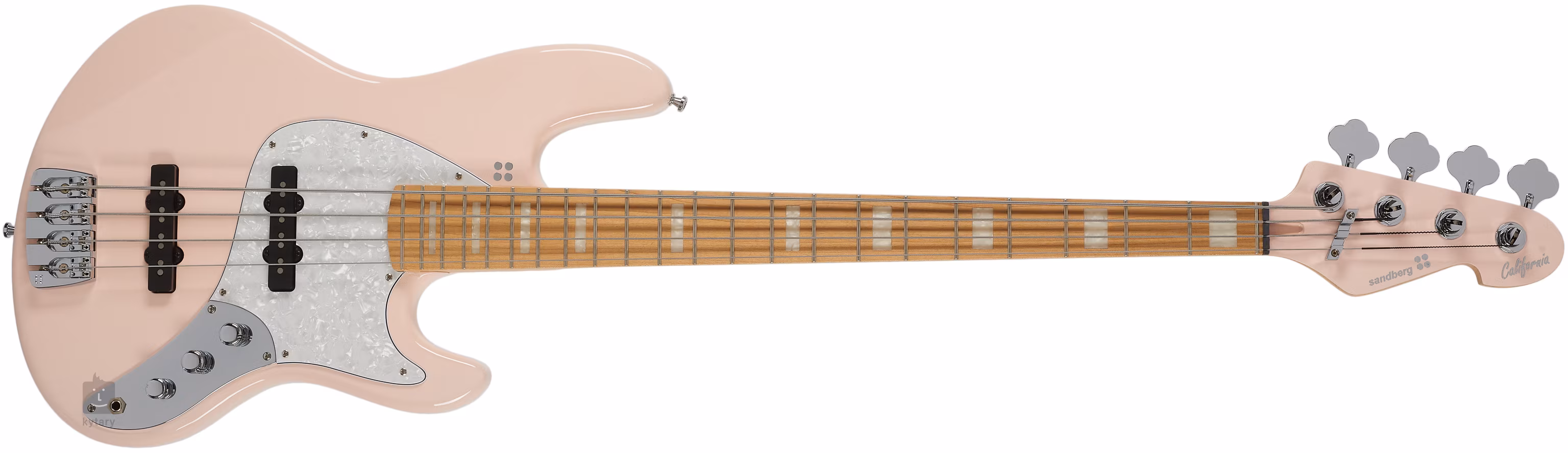 Der Korpus dieses Basses ist aus hochwertiger Erle in Hochglanzlackierung gefertigt. Der Hals ist aus kanadischem Ahorn gefertigt und mit sechs Schrauben verschraubt, die ihn in einer absolut exakten Position halten. Das Griffbrett ist ebenfalls aus Ahorn und verfügt über 22 Bünde, die Mensur des Instruments beträgt 864 Millimeter. Es ist mit zwei Singlecoil-Tonabnehmern mit Alnico-5-Magneten ausgestattet. Mit dem Volume-, Balance- und Tone-Potentiometer lässt sich der Klang einstellen. Die Kopfplatte ist typisch massiv mit separaten Steinen und von Sandberg gefertigt. Die Stimmmechaniken sind ebenfalls von Sandberg.