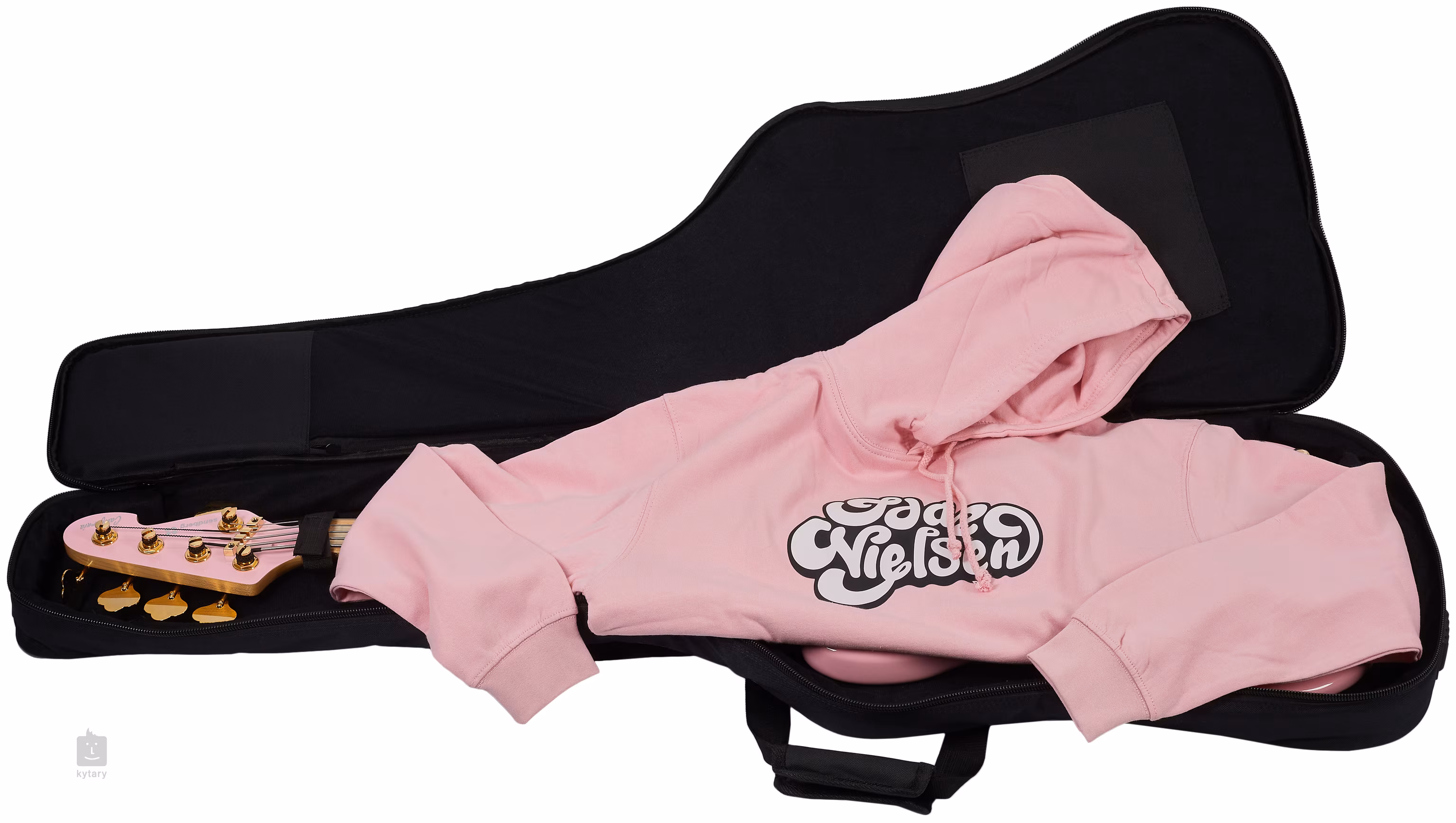 Dieser Bass ist das Signature-Instrument von Ida Nielsen, die neben ihrer umfangreichen Solokarriere auch aus der Backing-Band von Prince selbst bekannt ist. Der Korpus ist aus Erle, der Hals aus kanadischem Ahorn, und er ist mit sechs Schrauben verschraubt, die ihn in einer absolut exakten Position halten. Das Griffbrett ist aus geöstem Ahorn gefertigt und hat 22 Bünde. Das Instrument hat eine Mensur von 864 Millimetern.